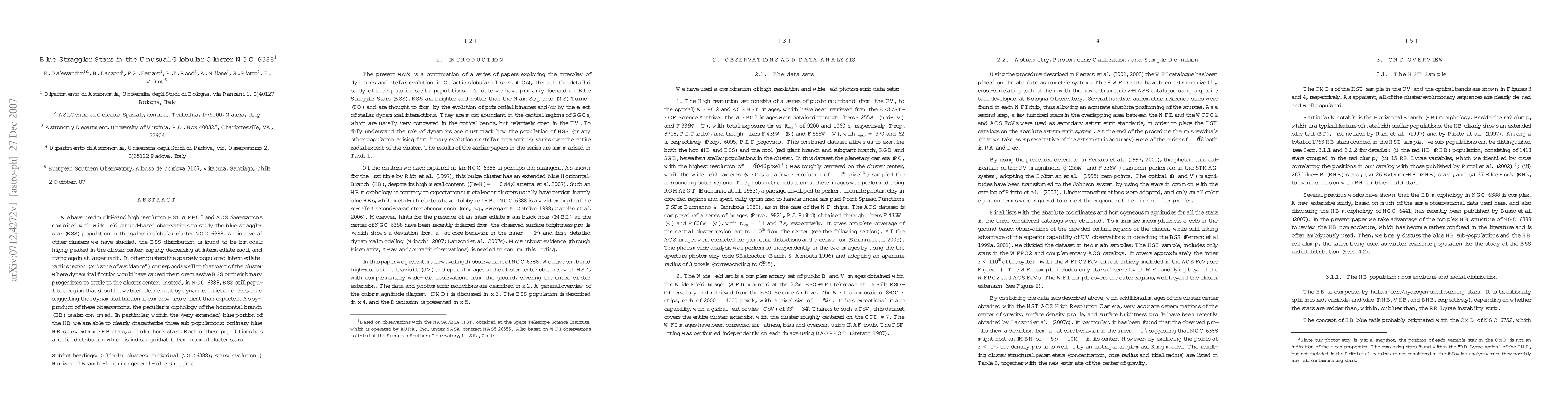 This study uses HST and ground-based observations to investigate blue straggler stars in NGC 6388, finding a bimodal BSS distribution contrary to the expected dynamical friction effect. Additionally, it characterizes three sub-populations within the horizontal branch, each with similar radial distributions to normal cluster stars.