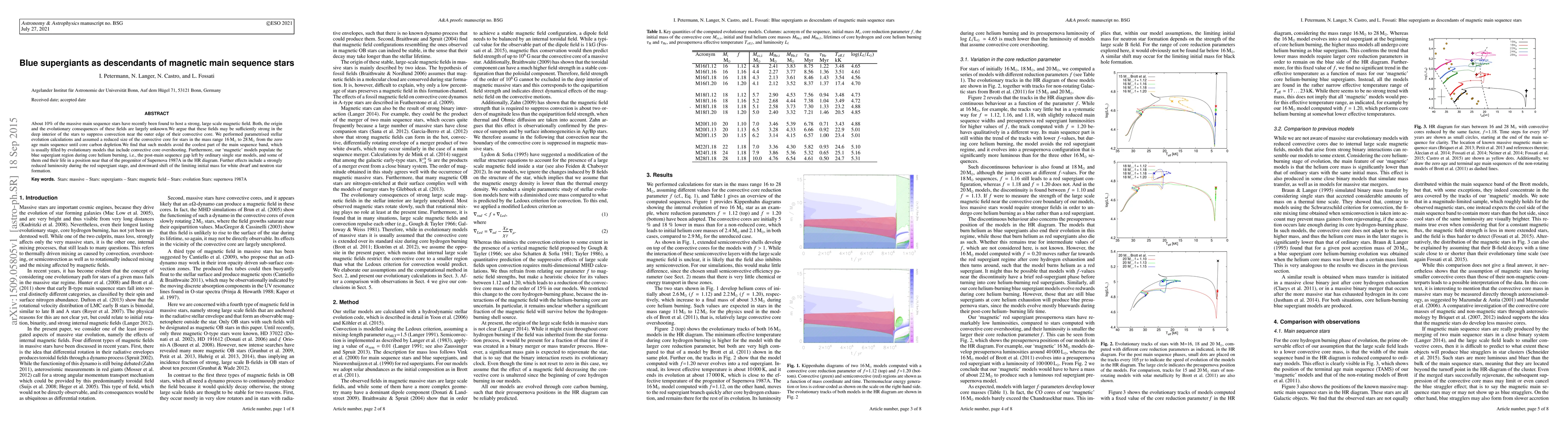 This paper proposes that magnetic fields in massive main sequence stars can suppress convection, leading to a reduced size of the convective core. Such magnetic stars evolve into blue supergiants during core helium burning, filling the post-main sequence gap and potentially ending their life as progenitors of supernovae.