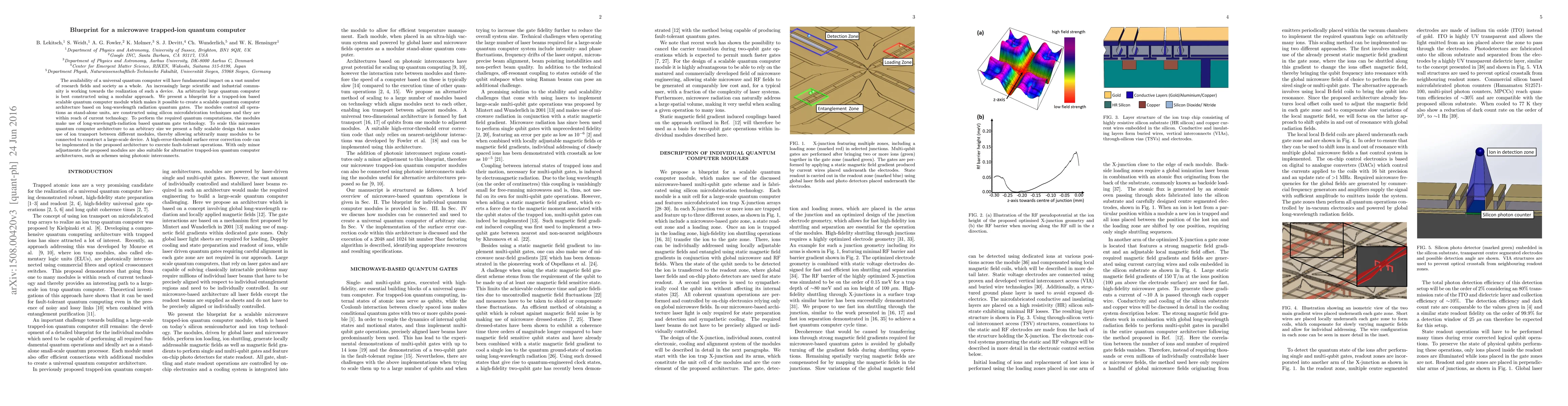This paper outlines a blueprint for a scalable trapped-ion quantum computer using microwave radiation for quantum gates, employing modular design and silicon microfabrication techniques. The proposed architecture allows for scalable ion transport and fault-tolerant operations via surface error correction.