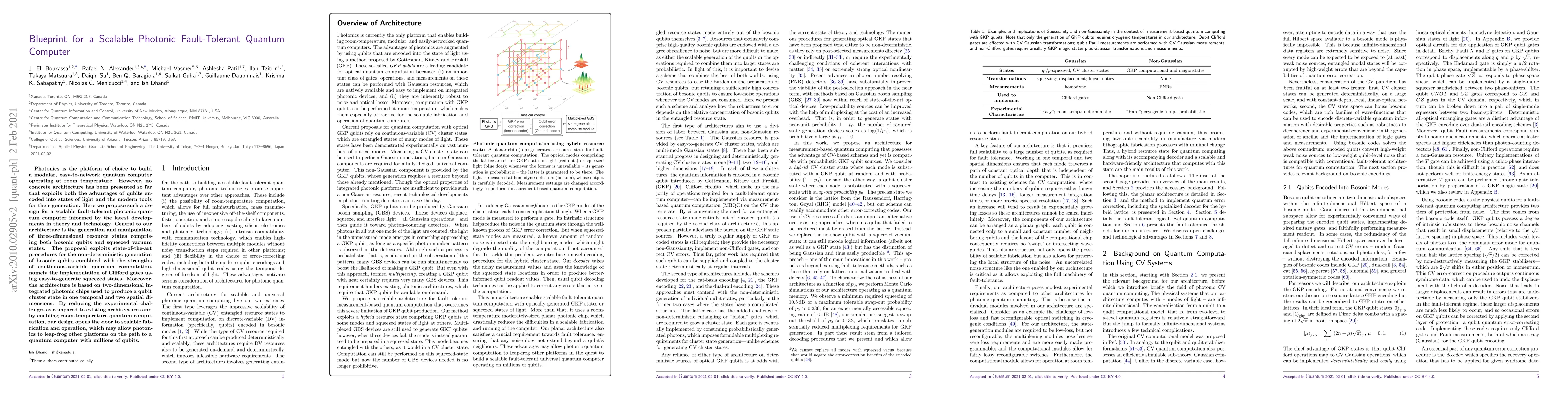 This paper proposes a scalable, fault-tolerant photonic quantum computer architecture leveraging three-dimensional hybrid resource states and two-dimensional integrated photonic chips. It aims to combine the advantages of photonic qubits and continuous-variable quantum computation for room-temperature operation.