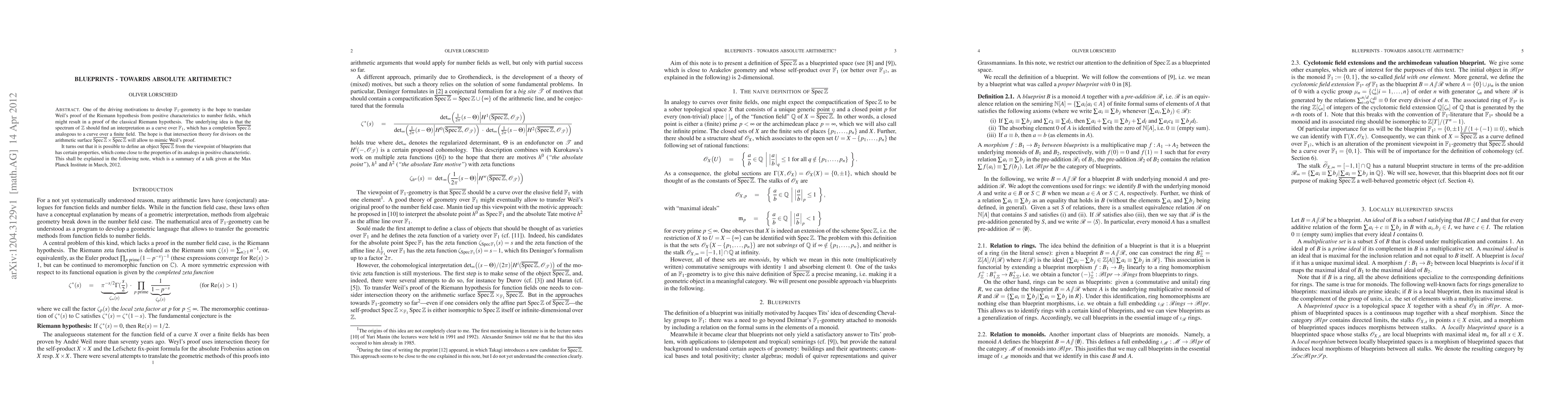 One of the driving motivations to develop $\F_1$-geometry is the hope to translate Weil's proof of the Riemann hypothesis from positive characteristics to number fields, which might result in a proof of the classical Riemann hypothesis. The underlying idea is that the spectrum of $\Z$ should find an interpretation as a curve over $\F_1$, which has a completion $\bar{\Spec\Z}$ analogous to a curve over a finite field. The hope is that intersection theory for divisors on the arithmetic surface $\bar{\Spec\Z} \times \bar{\Spec\Z}$ will allow to mimic Weil's proof. It turns out that it is possible to define an object $\bar{\Spec\Z}$ from the viewpoint of blueprints that has certain properties, which come close to the properties of its analogs in positive characteristic. This shall be explained in the following note, which is a summary of a talk given at the Max Planck Institute in March, 2012.
