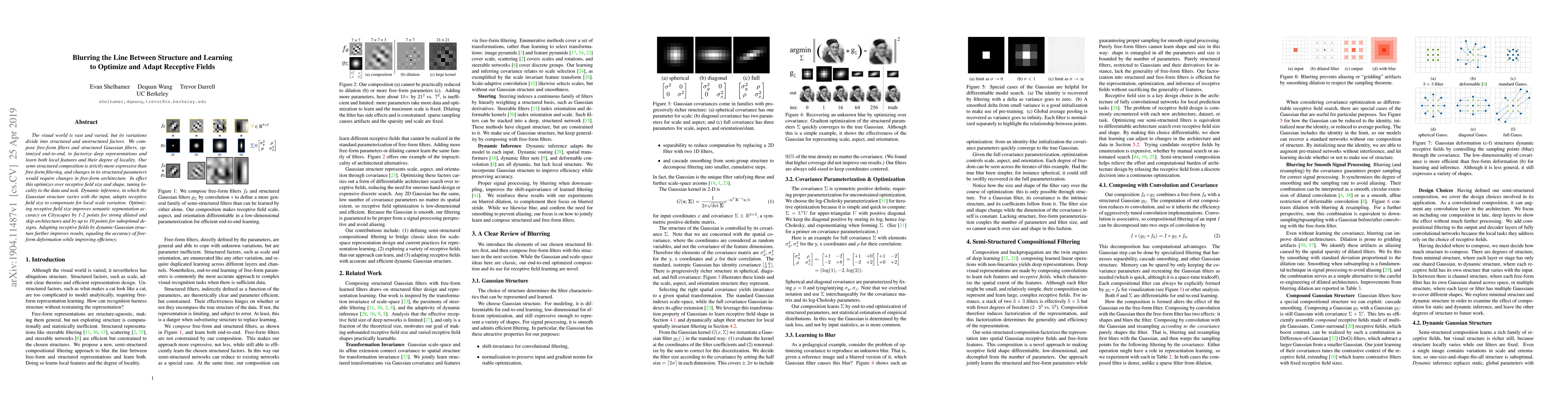 The visual world is vast and varied, but its variations divide into structured and unstructured factors. We compose free-form filters and structured Gaussian filters, optimized end-to-end, to factorize deep representations and learn both local features and their degree of locality. Our semi-structured composition is strictly more expressive than free-form filtering, and changes in its structured parameters would require changes in free-form architecture. In effect this optimizes over receptive field size and shape, tuning locality to the data and task. Dynamic inference, in which the Gaussian structure varies with the input, adapts receptive field size to compensate for local scale variation. Optimizing receptive field size improves semantic segmentation accuracy on Cityscapes by 1-2 points for strong dilated and skip architectures and by up to 10 points for suboptimal designs. Adapting receptive fields by dynamic Gaussian structure further improves results, equaling the accuracy of free-form deformation while improving efficiency.