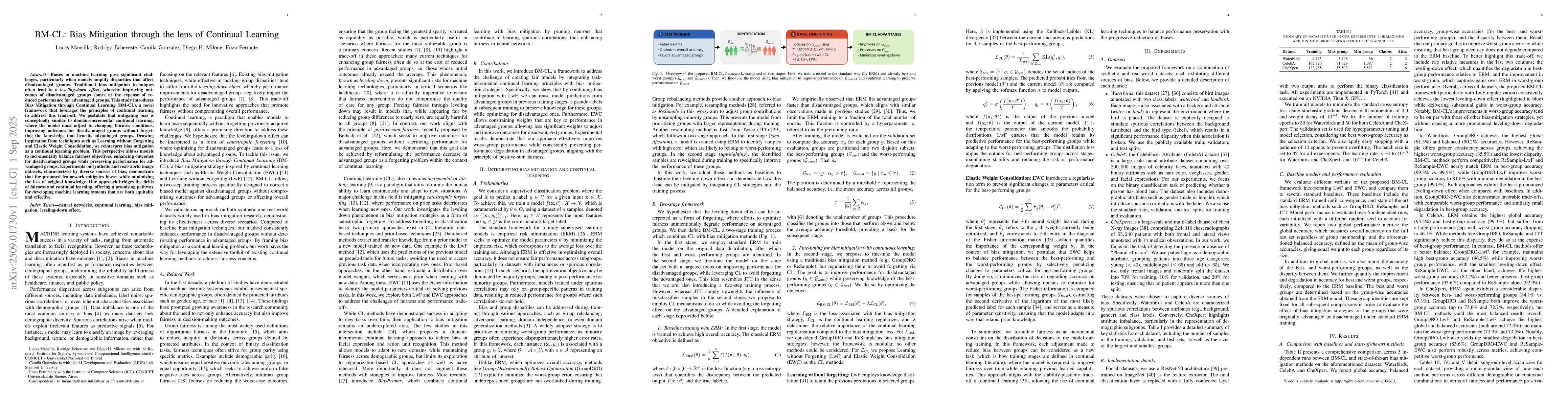 Biases in machine learning pose significant challenges, particularly when models amplify disparities that affect disadvantaged groups. Traditional bias mitigation techniques often lead to a {\itshape leveling-down effect}, whereby improving outcomes of disadvantaged groups comes at the expense of reduced performance for advantaged groups. This study introduces Bias Mitigation through Continual Learning (BM-CL), a novel framework that leverages the principles of continual learning to address this trade-off. We postulate that mitigating bias is conceptually similar to domain-incremental continual learning, where the model must adjust to changing fairness conditions, improving outcomes for disadvantaged groups without forgetting the knowledge that benefits advantaged groups. Drawing inspiration from techniques such as Learning without Forgetting and Elastic Weight Consolidation, we reinterpret bias mitigation as a continual learning problem. This perspective allows models to incrementally balance fairness objectives, enhancing outcomes for disadvantaged groups while preserving performance for advantaged groups. Experiments on synthetic and real-world image datasets, characterized by diverse sources of bias, demonstrate that the proposed framework mitigates biases while minimizing the loss of original knowledge. Our approach bridges the fields of fairness and continual learning, offering a promising pathway for developing machine learning systems that are both equitable and effective.