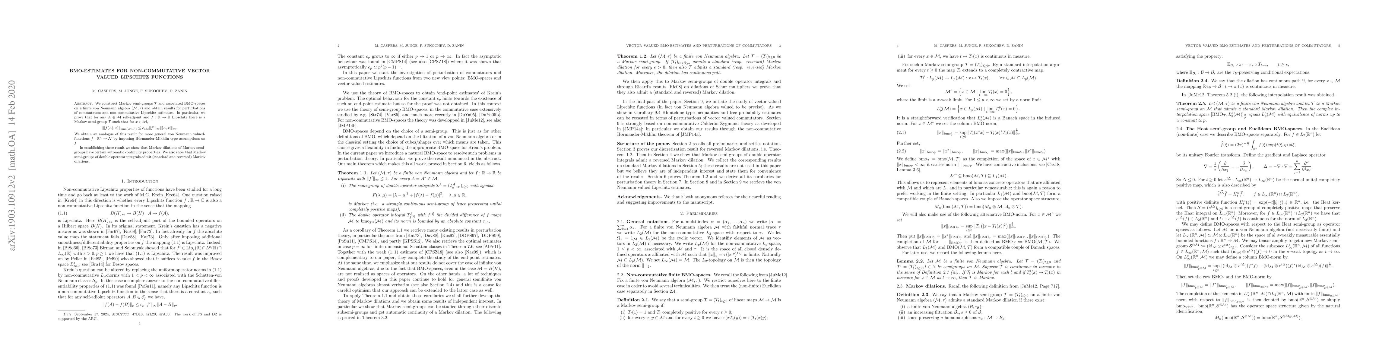 This research paper constructs Markov semi-groups on finite von Neumann algebras, leading to new BMO-space estimates. It proves Lipschitz estimates for perturbations of commutators, extending results to von Neumann valued-functions under specific assumptions. The study also highlights automatic continuity properties of Markov semi-group dilations and demonstrates that double operator integral semi-groups have Markov dilations.