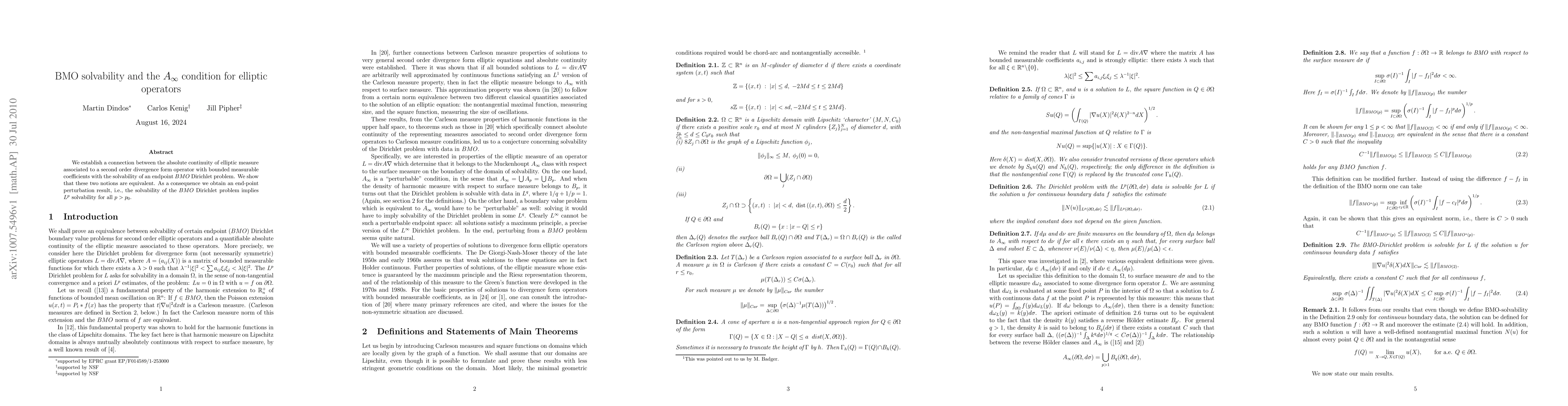 This paper demonstrates a link between the absolute continuity of elliptic measure and the solvability of an endpoint $BMO$ Dirichlet problem for elliptic operators. It shows the equivalence of these two concepts and derives an end-point perturbation result for $L^p$ solvability.