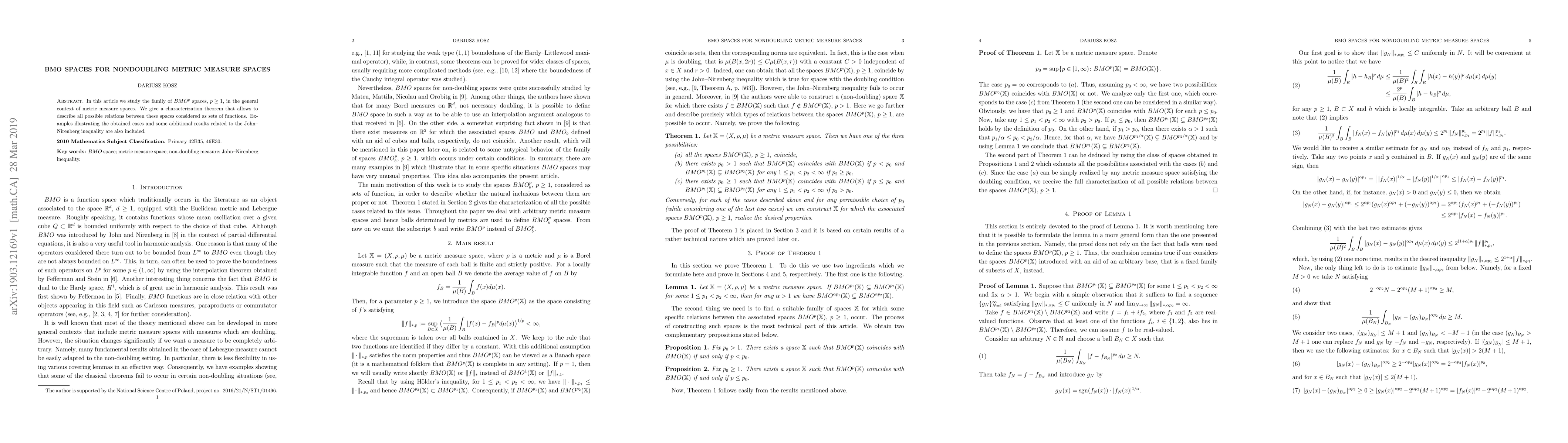 In this article we study the family of $BMO^p$ spaces, $p \geq 1$, in the general context of metric measure spaces. We give a characterization theorem that allows to describe all possible relations between these spaces considered as sets of functions. Examples illustrating the obtained cases and some additional results related to the John--Nirenberg inequality are also included.