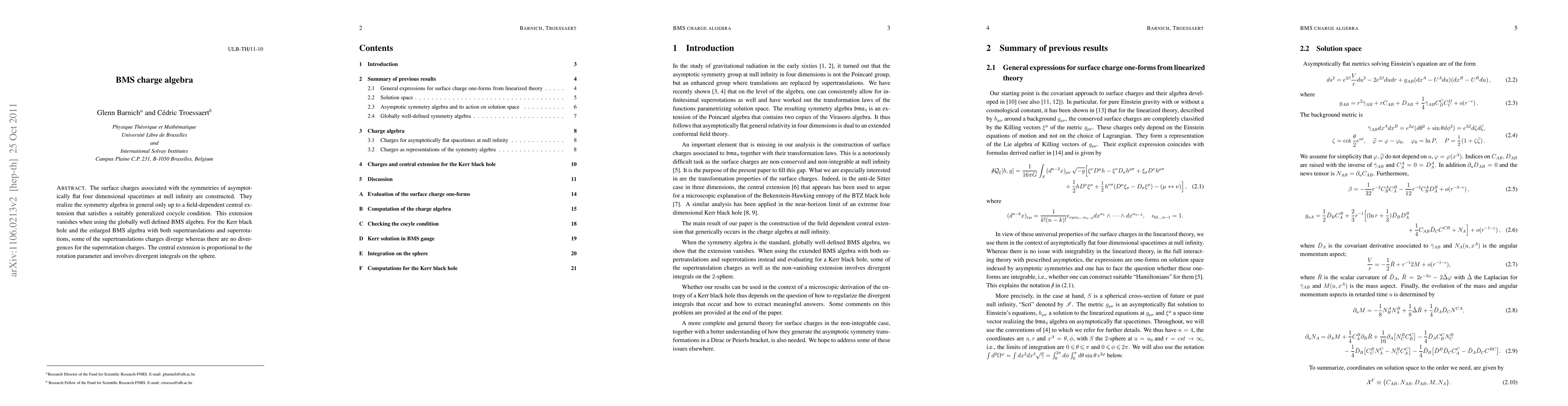 This paper constructs surface charges for symmetries in asymptotically flat four-dimensional spacetimes, revealing a field-dependent central extension in the charge algebra. The central extension vanishes for globally well-defined BMS algebra, with divergent charges for supertranslations but not for superrotations in the Kerr black hole context.