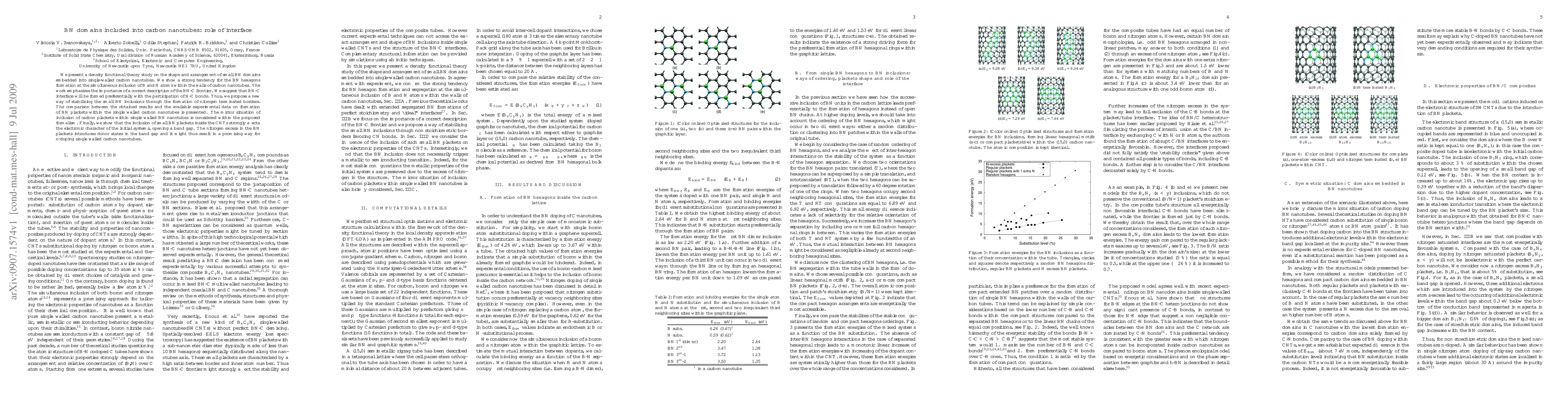 This study uses density functional theory to investigate BN domains within carbon nanotubes, revealing a strong tendency for BN hexagon formation at the BN-C interface, primarily through N-C bonds. The inclusion of small BN plackets affects the electronic properties, potentially enabling n-doping in single-walled carbon nanotubes.