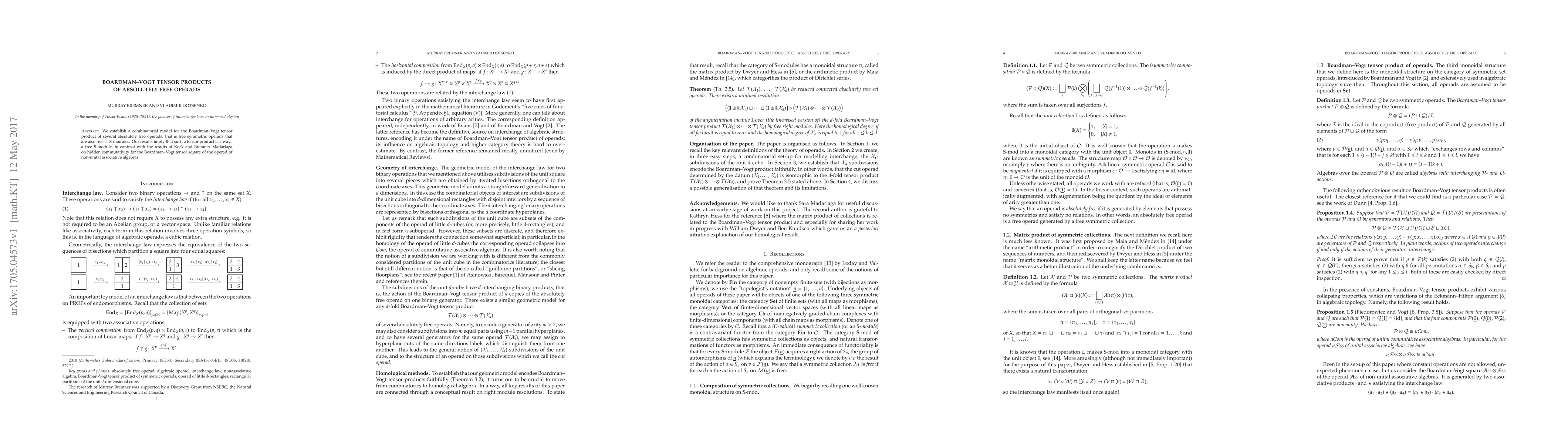 This paper develops a combinatorial model for the Boardman--Vogt tensor product of several absolutely free operads, showing that such a product is always a free $\mathbb{S}$-module, differing from previous results on hidden commutativity in tensor squares of specific operads.