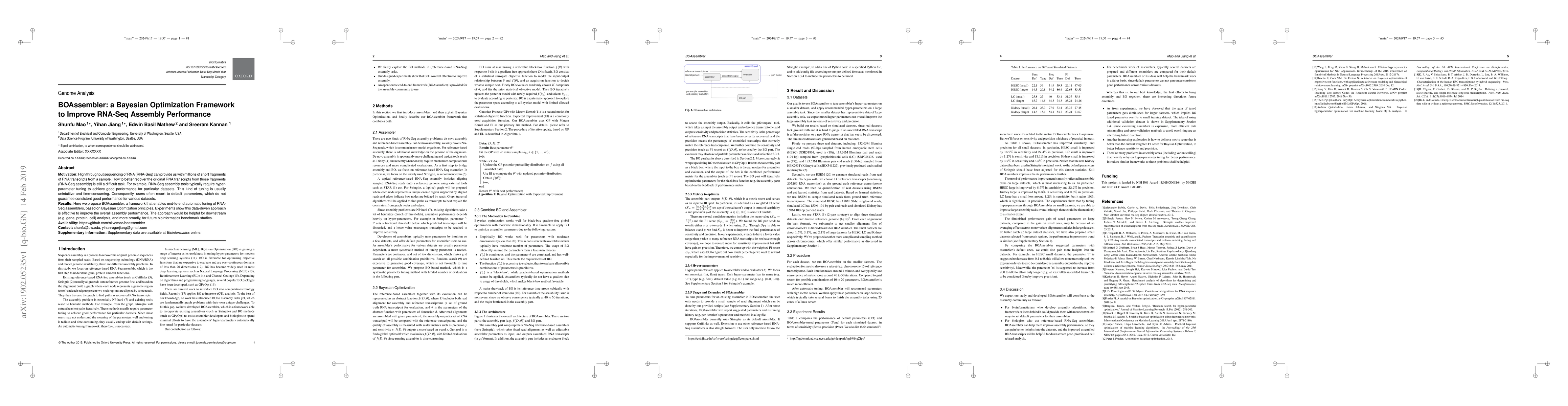 BOAssembler is a Bayesian Optimization Framework designed to automate the tuning of RNA-Seq assemblers, significantly improving their performance. This approach effectively eliminates the need for manual hyper-parameter tuning, enhancing the consistency and efficiency of RNA-Seq assembly across various datasets.
