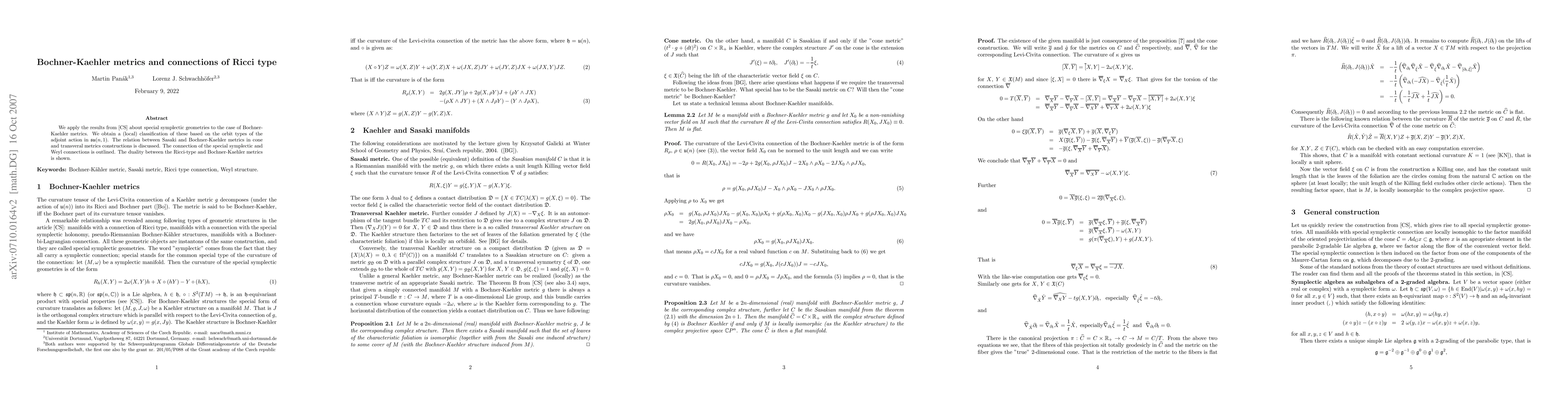 This research classifies Bochner-Kaehler metrics using the adjoint action in $su(n,1)$, and explores their connections to Sasaki and Weyl metrics. It also demonstrates the duality between Ricci-type and Bochner-Kaehler metrics, based on findings from special symplectic connections.