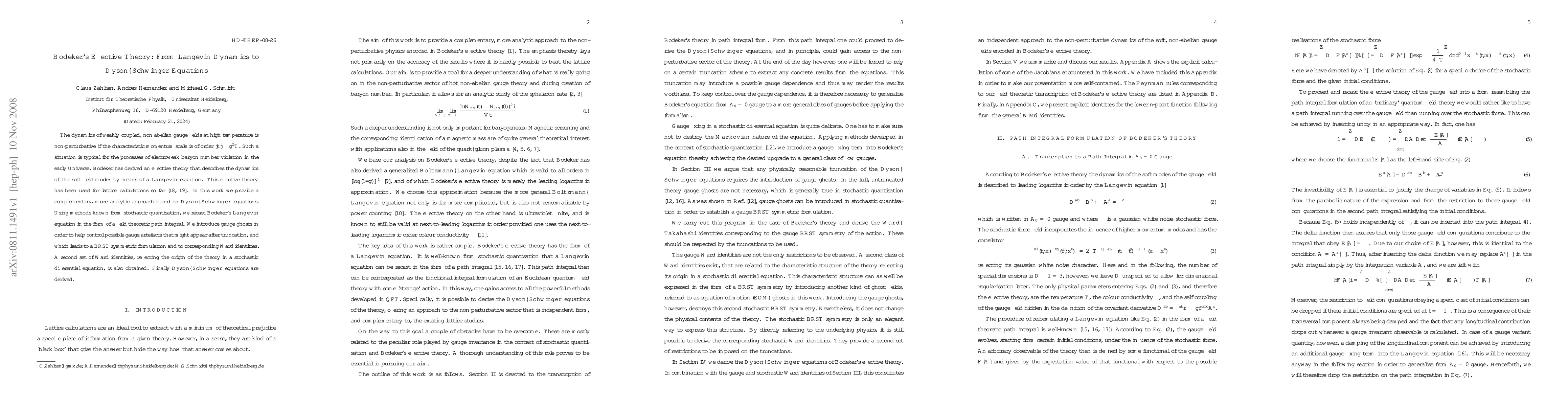 This paper develops an analytical approach to Bodeker's effective theory for weakly coupled, high-temperature non-abelian gauge fields, translating his Langevin dynamics into Dyson-Schwinger equations. It introduces gauge ghosts and BRST symmetry to manage gauge artifacts and derives a set of Ward identities from both the stochastic and field theoretical perspectives.