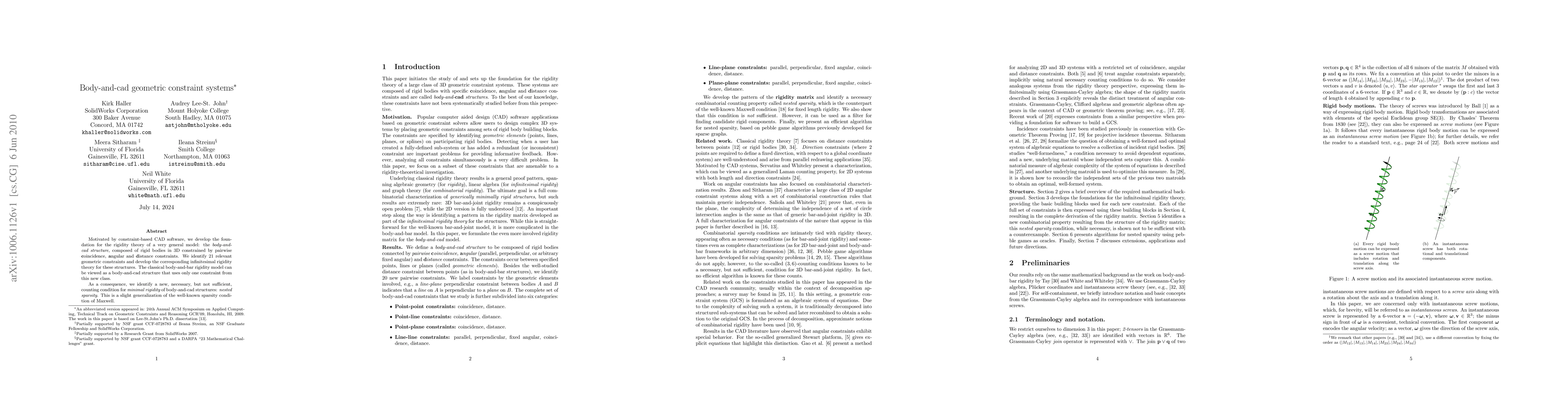Motivated by constraint-based CAD software, we develop the foundation for the rigidity theory of a very general model: the body-and-cad structure, composed of rigid bodies in 3D constrained by pairwise coincidence, angular and distance constraints. We identify 21 relevant geometric constraints and develop the corresponding infinitesimal rigidity theory for these structures. The classical body-and-bar rigidity model can be viewed as a body-and-cad structure that uses only one constraint from this new class. As a consequence, we identify a new, necessary, but not sufficient, counting condition for minimal rigidity of body-and-cad structures: nested sparsity. This is a slight generalization of the well-known sparsity condition of Maxwell.