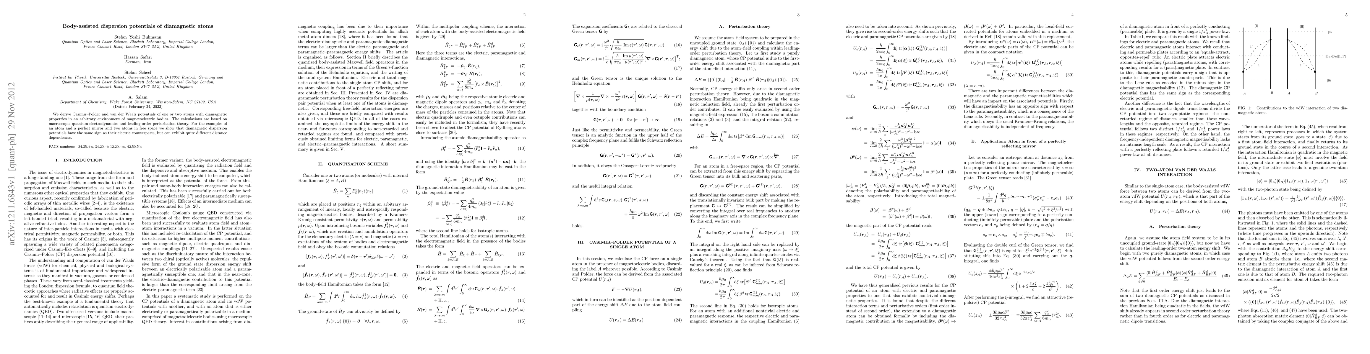 Researchers developed equations for how diamagnetic atoms interact with their environment using quantum electrodynamics, finding similar but distinct behavior compared to electric interactions.