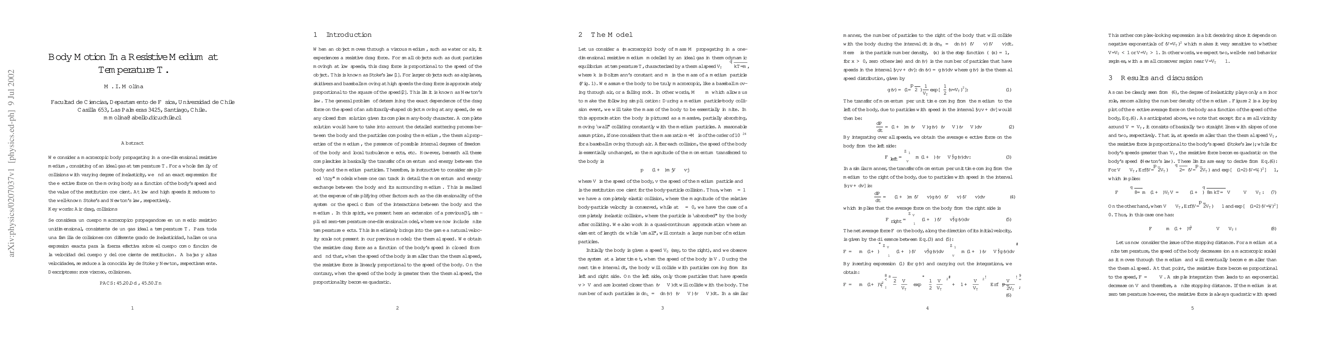 Researchers found an exact expression for the effective force on a moving body in a resistive medium at temperature T, which reduces to Stoke's law at low speeds and Newton's law at high speeds.