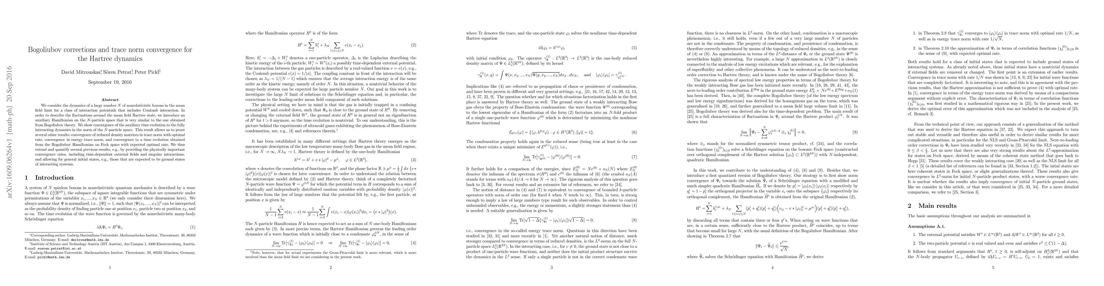 This paper investigates the dynamics of a large number of nonrelativistic bosons in the mean field limit, introducing an auxiliary Hamiltonian to describe fluctuations. It demonstrates convergence of the auxiliary dynamics to the fully interacting dynamics, proving trace norm convergence of reduced density matrices and energy convergence, and extending previous results with optimal rates.