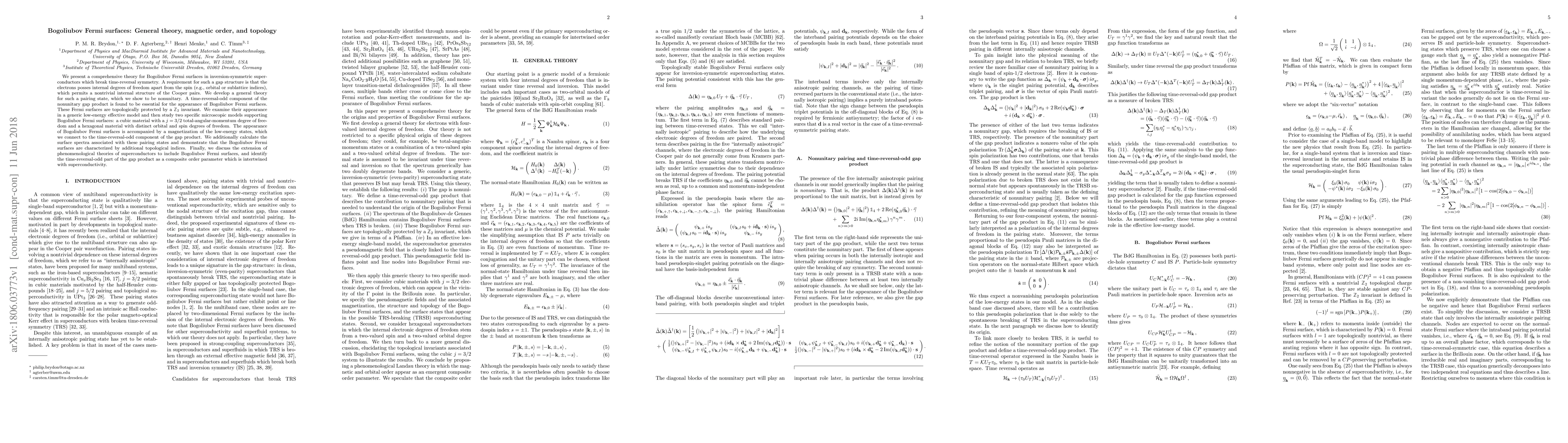 This paper develops a comprehensive theory for Bogoliubov Fermi surfaces in inversion-symmetric superconductors that break time-reversal symmetry, showing that they arise from nonunitary pairing states with a time-reversal-odd component. These topologically protected Fermi surfaces are accompanied by magnetization and additional topological indices.