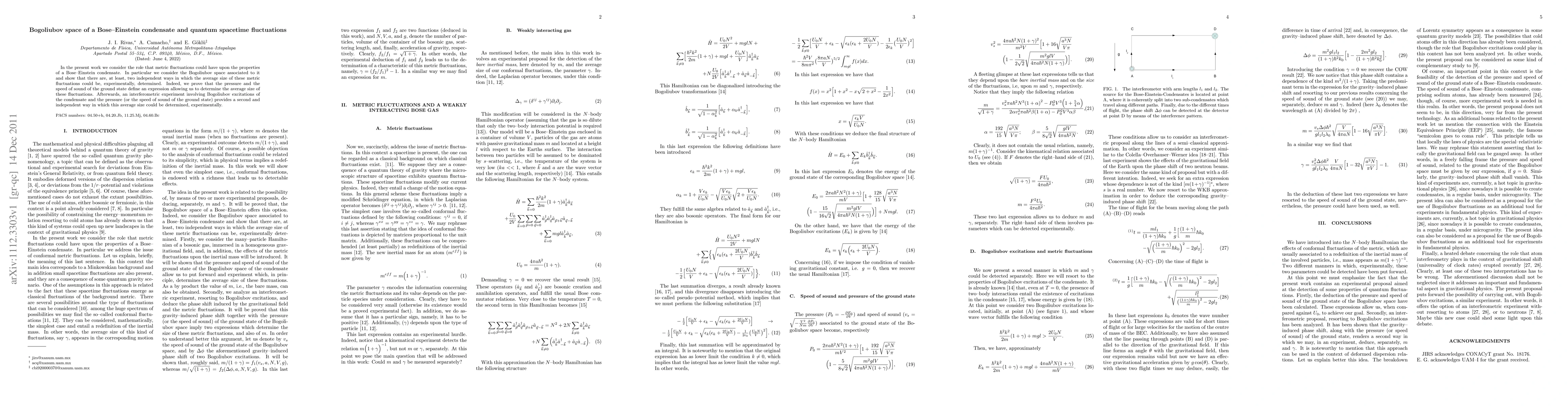 This paper explores how metric fluctuations in a Bose-Einstein condensate affect its properties, finding two independent ways to measure the size of these fluctuations experimentally.