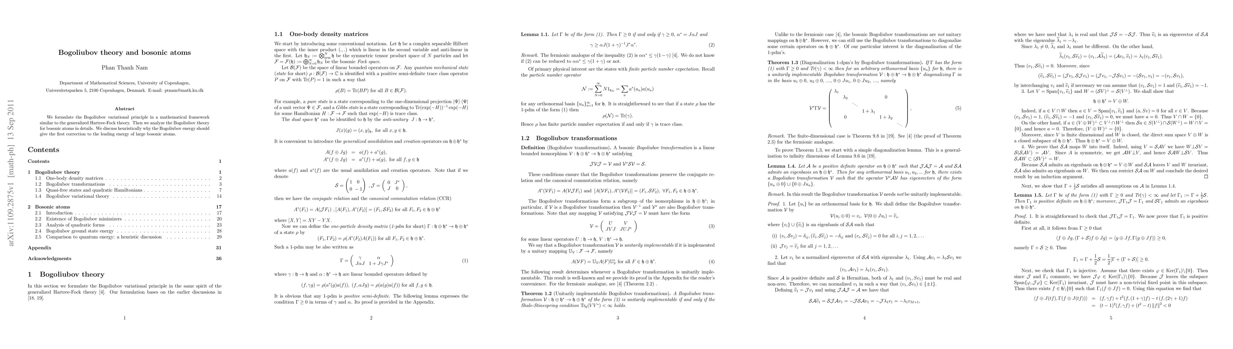 **Summary:** This paper formulates the Bogoliubov variational principle akin to generalized Hartree-Fock theory and examines its application to bosonic atoms. It explains the rationale behind Bogoliubov energy providing the first correction to the leading energy in large bosonic atom systems.