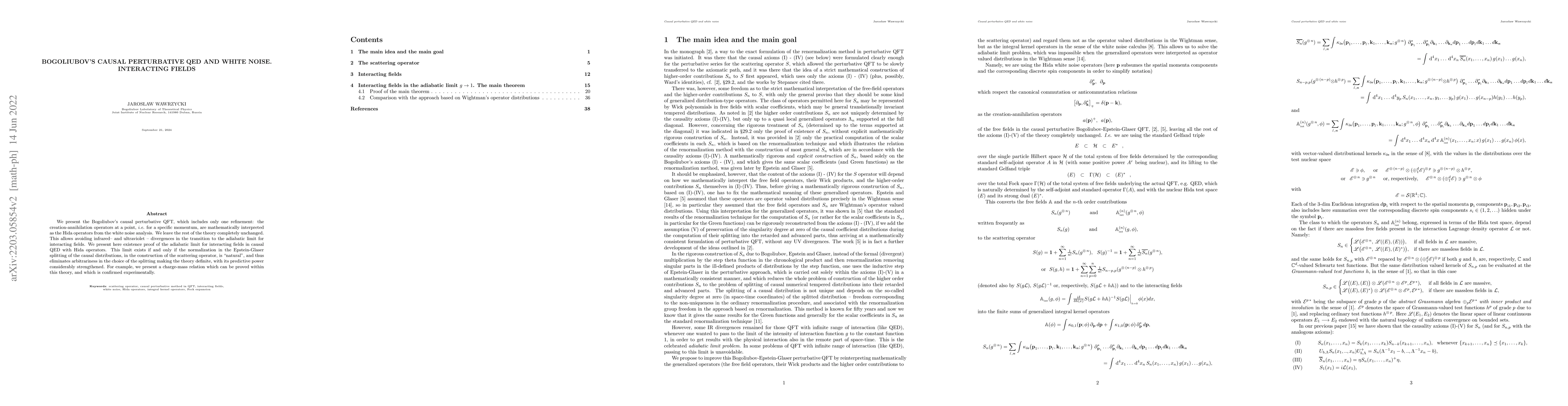 This paper introduces Bogoliubov's causal perturbative Quantum Electrodynamics (QED) using Hida operators from white noise analysis, which helps avoid divergences in the adiabatic limit. It proves the existence of this limit for interacting fields under specific normalization conditions, enhancing the theory's predictive power.