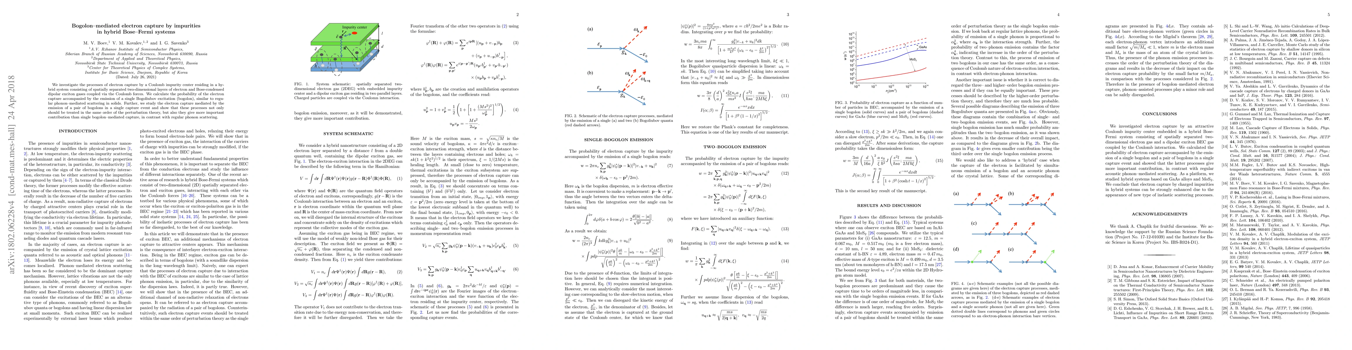 Researchers study electron capture in hybrid Bose-Fermi systems, finding that paired bogolon emissions significantly contribute to capture processes, differing from phonon-mediated scattering.