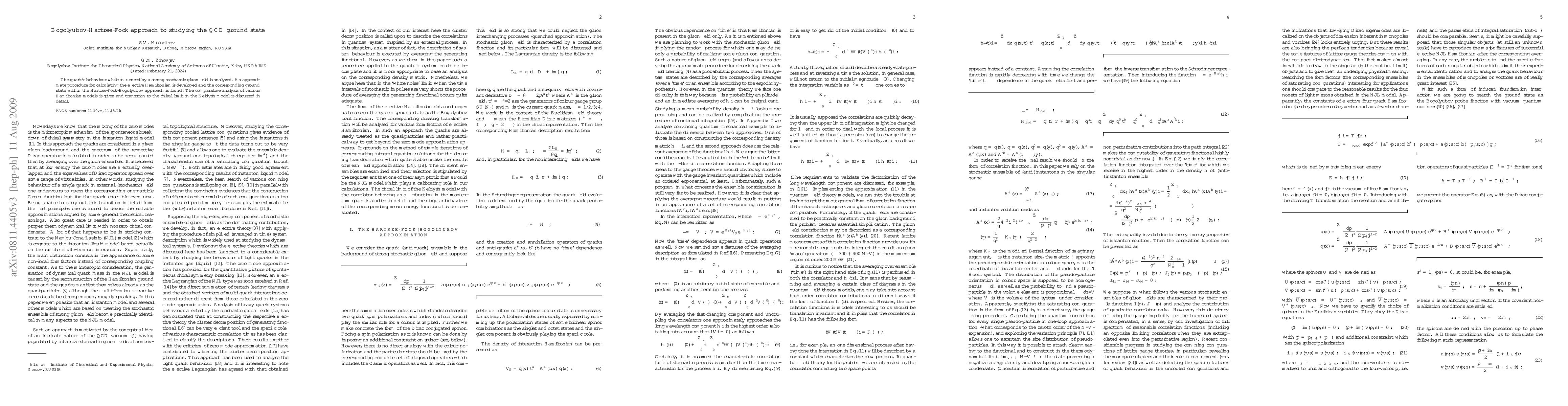 This paper develops an approximate method to calculate the effective Hamiltonian for quarks influenced by a strong stochastic gluon field, utilizing the Hartree-Fock-Bogolyubov approach to determine the QCD ground state. It also includes a comparative analysis of different Hamiltonian models and a detailed transition to the chiral limit in the Keldysh model.