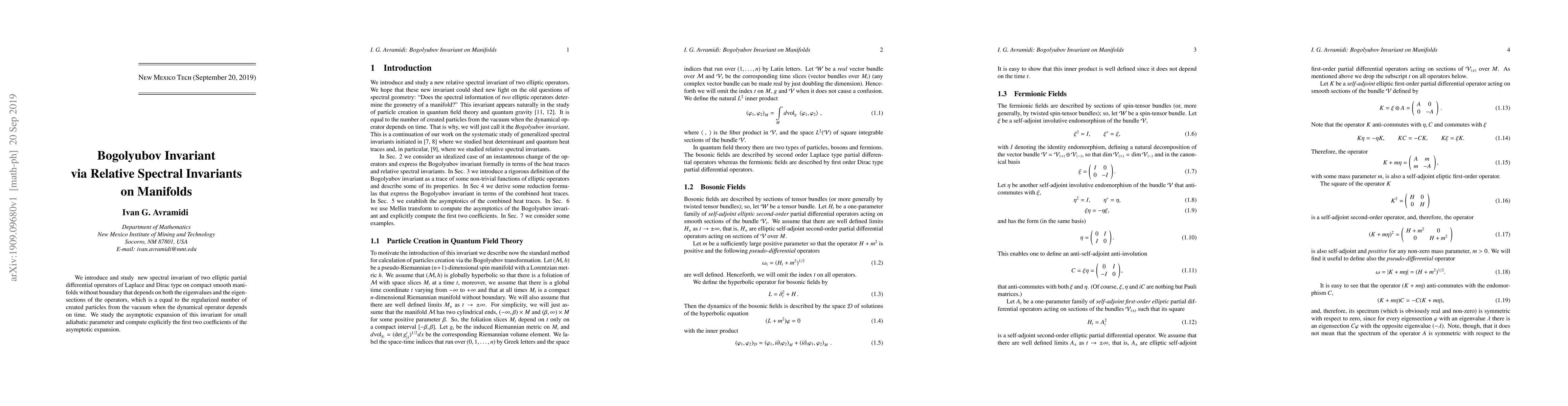 This paper introduces a new spectral invariant for elliptic operators on manifolds, relating it to the number of particles created from vacuum under time-dependent dynamics. It computes the first two coefficients in the asymptotic expansion of this invariant for small adiabatic parameters.