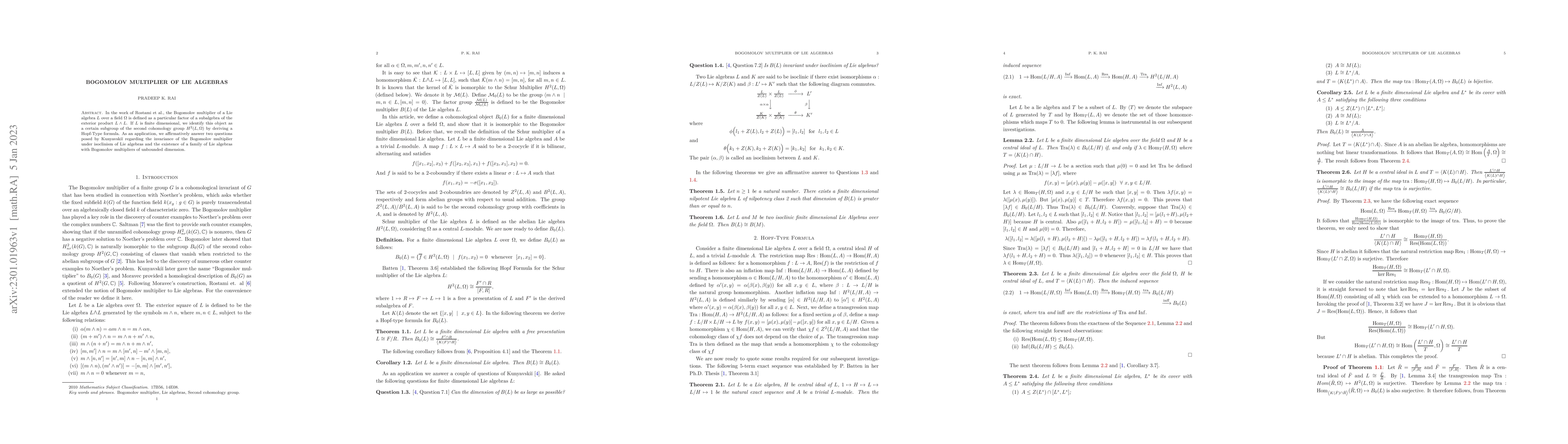 The paper defines the Bogomolov multiplier of a Lie algebra as a subgroup linked to the second cohomology group, and confirms the invariance under isoclinism and existence of Lie algebras with unbounded Bogomolov multiplier dimensions, answering questions by Kunyavskii.