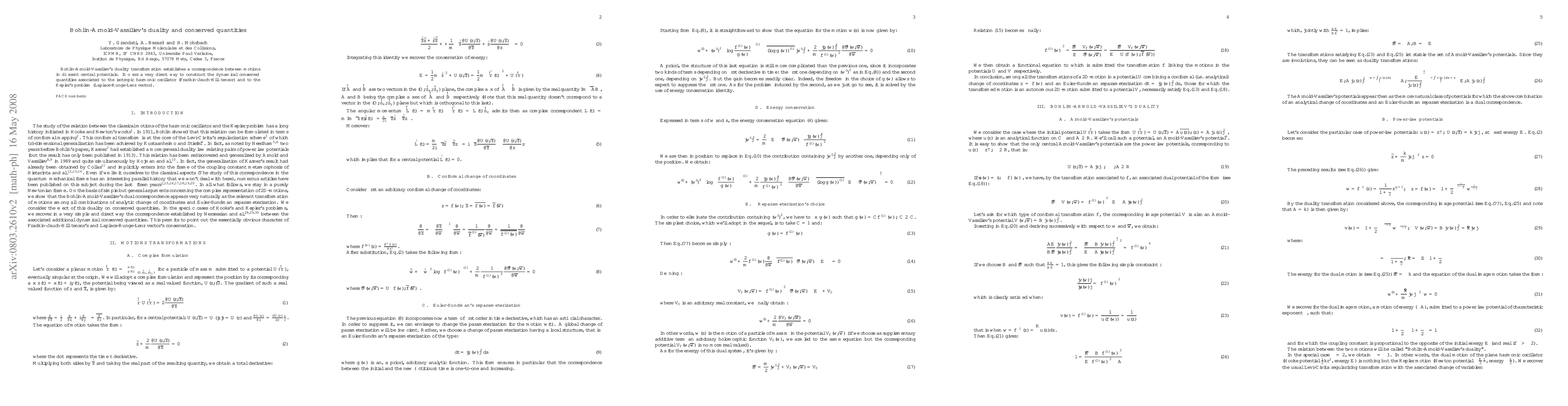 Bohlin-Arnold-Vassiliev's duality transformation establishes a correspondence between motions in different central potentials. It offers a very direct way to construct the dynamical conserved quantities associated to the isotropic harmonic oscillator (Fradkin-Jauch-Hill tensor) and to the Kepler's problem (Laplace-Runge-Lenz vector).