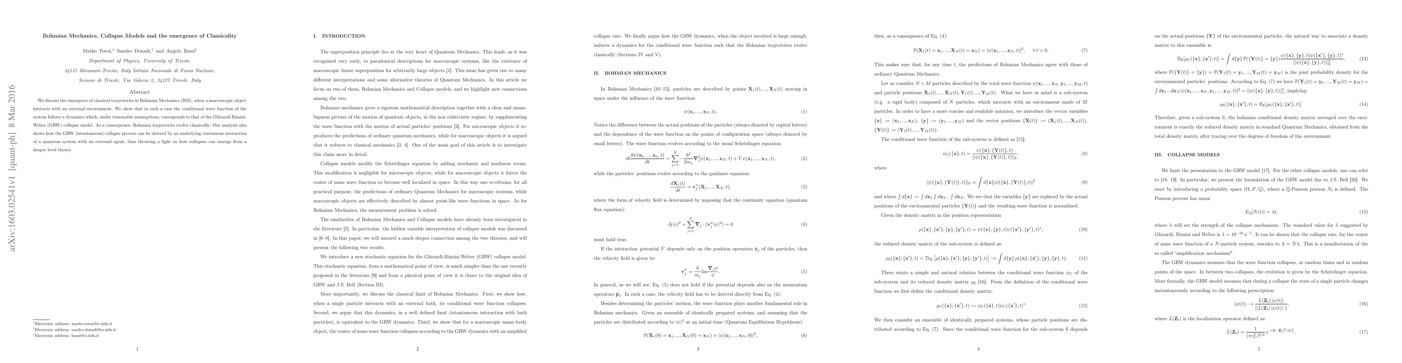 This paper explores how classical trajectories emerge in Bohmian Mechanics when interacting with an external environment, demonstrating a connection to the Ghirardi-Rimini-Weber (GRW) collapse model, and revealing that GRW's collapse process can arise from continuous quantum interactions.