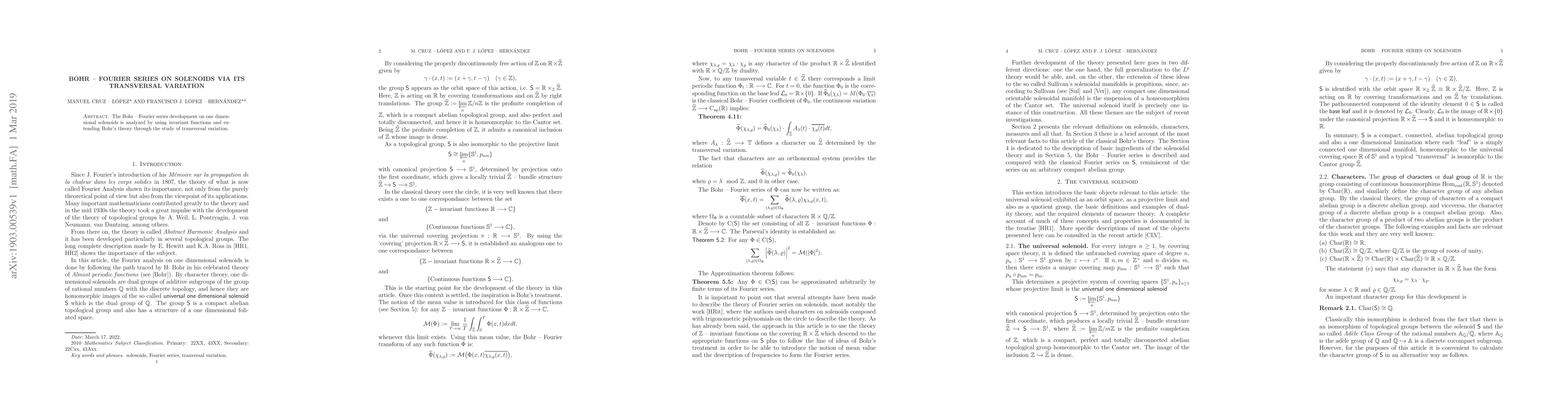 Summary: This paper explores the Bohr-Fourier series on one-dimensional solenoids using invariant functions and extends Bohr's theory by investigating the transversal variation to develop a comprehensive understanding of the series.