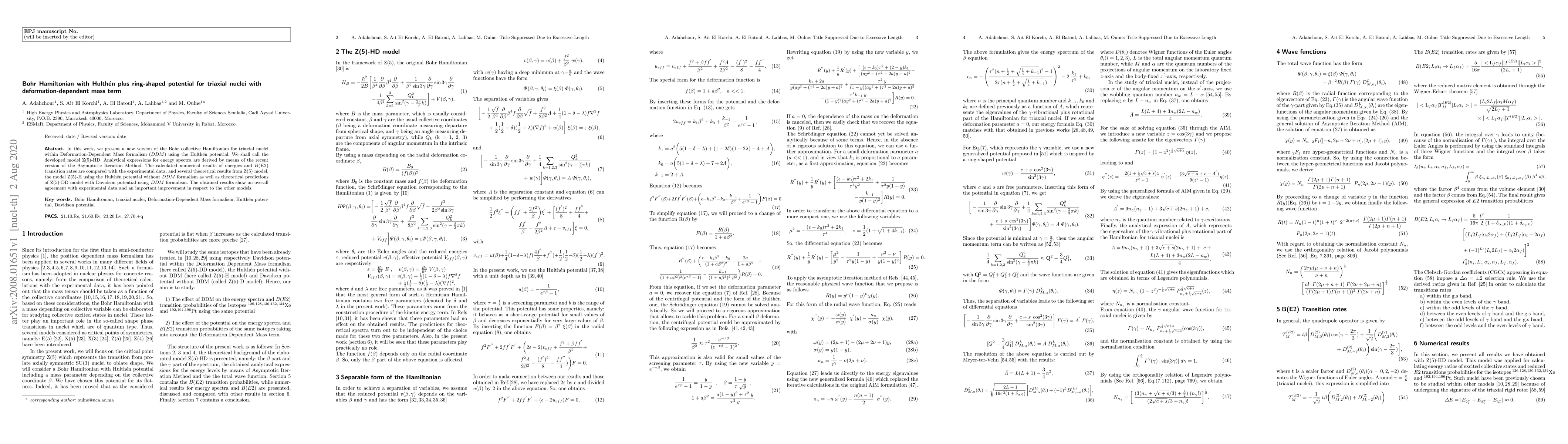 In this work, we present a new version of the Bohr collective Hamiltonian for triaxial nuclei within Deformation-Dependent Mass formalism (DDM) using the Hulth\'en potential. We shall call the developed model Z(5)-HD. Analytical expressions for energy spectra are derived by means of the recent version of the Asymptotic Iteration Method. The calculated numerical results of energies and B(E2) transition rates are compared with the experimental data, and several theoretical results from Z(5) model, the model Z(5)-H using the Hulth\'en potential without DDM formalism as well as theoretical predictions of Z(5)-DD model with Davidson potential using DDM formalism. The obtained results show an overall agreement with experimental data and an important improvement in respect to the other models.