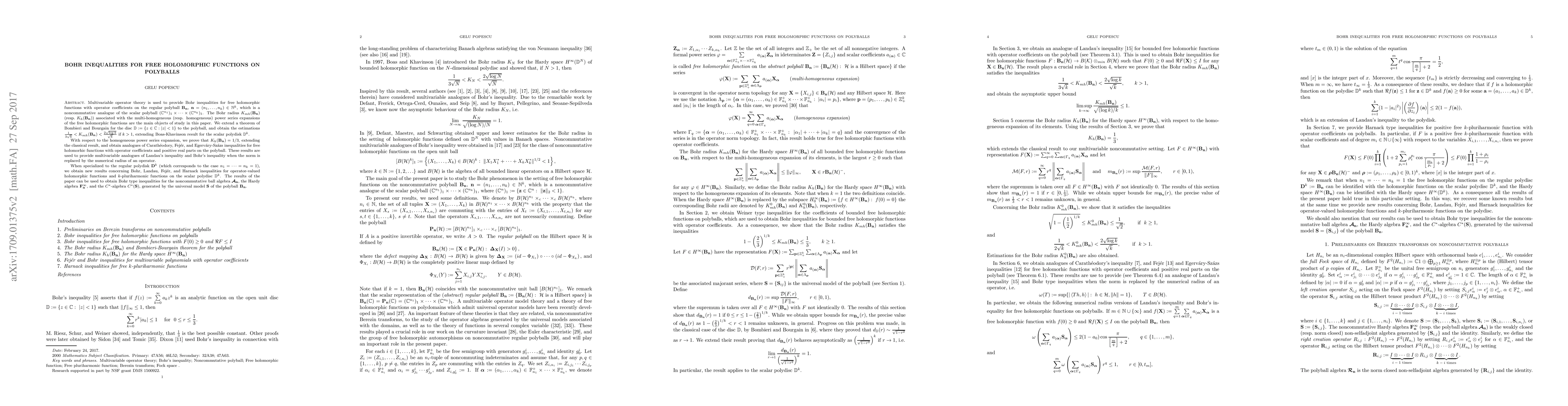 Multivariable operator theory is used to provide Bohr inequalities for free holomorphic functions with operator coefficients on the regular polyball. In addition, we obtain analogues of Caratheodory, Fejer, and Egervary-Szazs inequalities for free holomorhic functions with operator coefficients and positive real parts on the polyball. These results are used to provide multivariable analogues of Landau's inequality and Bohr's inequality when the norm is replaced by the numerical radius of an operator.