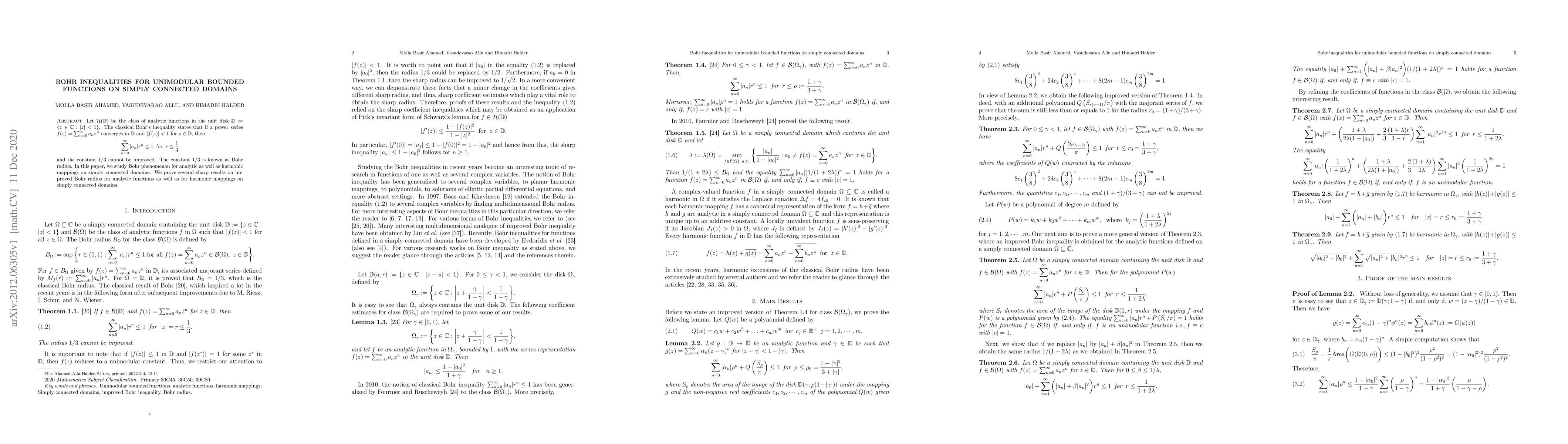 This paper investigates Bohr inequalities for unimodular bounded analytic functions in the unit disk and extends these results to harmonic mappings on simply connected domains, proving improved Bohr radii and establishing sharp bounds.