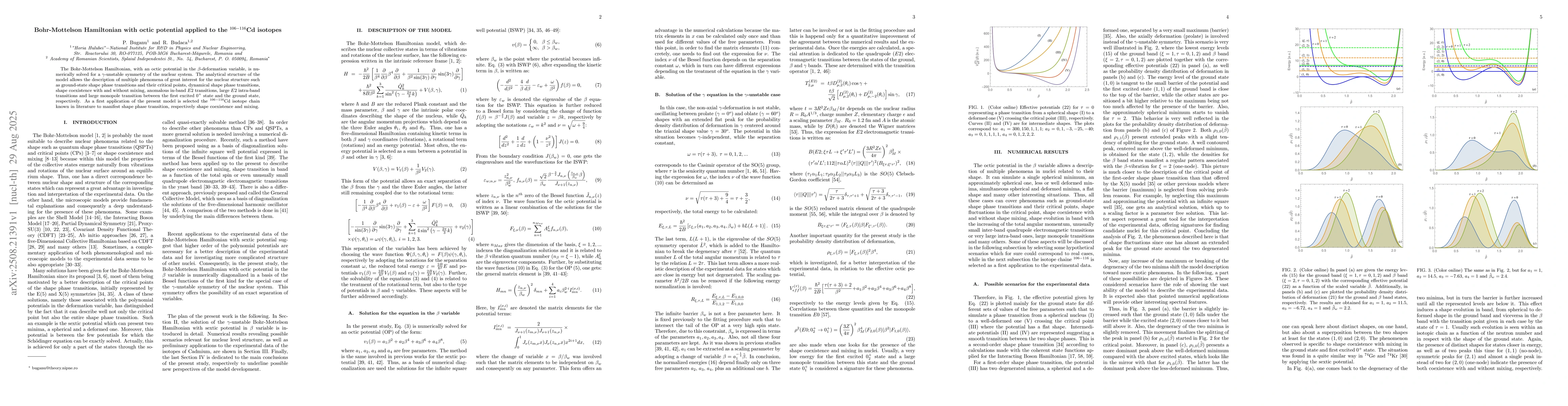 The Bohr-Mottelson Hamiltonian, with an octic potential in the $\beta$-deformation variable, is numerically solved for a $\gamma$-unstable symmetry of the nuclear system. The analytical structure of the model allows the description of multiple phenomena of great interest for the nuclear structure such as ground-state shape phase transitions and their critical points, dynamical shape phase transitions, shape coexistence with and without mixing, anomalous in-band $E2$ transitions, large $E2$ intra-band transitions and large monopole transition between the first excited $0^+$ state and the ground state, respectively. As a first application of the present model is selected the $^{106-116}$Cd isotope chain known in literature to manifest shape phase transition, respectively shape coexistence and mixing.