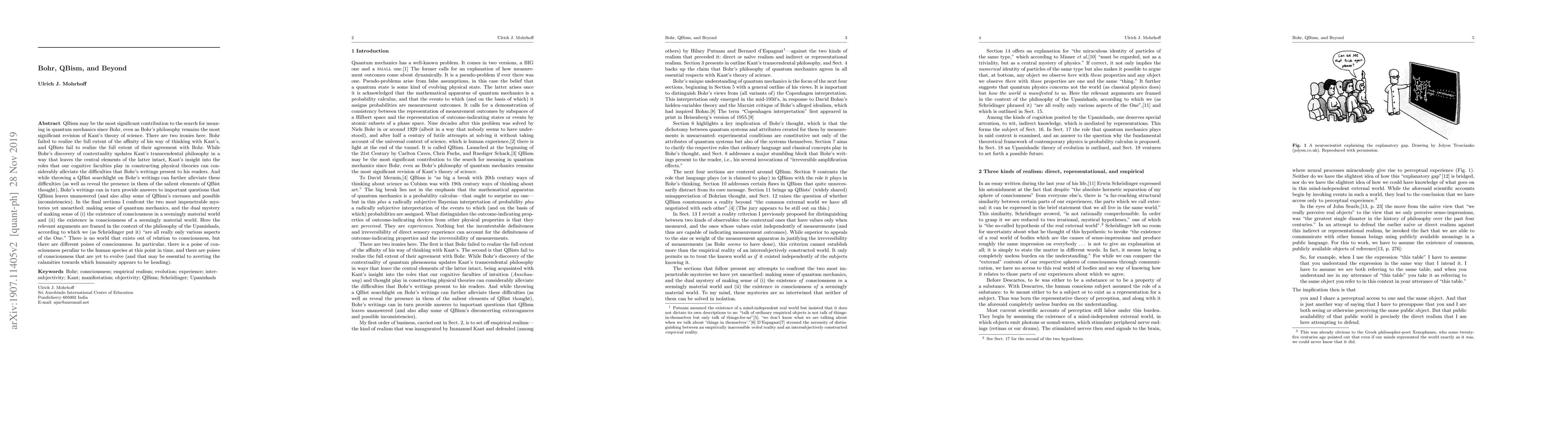 QBism may be the most significant contribution to the search for meaning in quantum mechanics since Bohr, even as Bohr's philosophy remains the most significant revision of Kant's theory of science. There are two ironies here. Bohr failed to realize the full extent of the affinity of his way of thinking with Kant's, and QBists fail to realize the full extent of their agreement with Bohr. While Bohr's discovery of contextuality updates Kant's transcendental philosophy in a way that leaves the central elements of the latter intact, Kant's insight into the roles that our cognitive faculties play in constructing physical theories can considerably alleviate the difficulties that Bohr's writings present to his readers. And while throwing a QBist searchlight on Bohr's writings can further alleviate these difficulties (as well as reveal the presence in them of the salient elements of QBist thought), Bohr's writings can in turn provide answers to important questions that QBism leaves unanswered (and also allay some of QBism's excesses). In the final sections I confront the two most impenetrable mysteries yet unearthed: making sense of quantum mechanics, and the dual mystery of making sense of (i) the existence of consciousness in a seemingly material world and (ii) the existence in consciousness of a seemingly material world. Here the relevant arguments are framed in the context of the philosophy of the Upanishads, according to which we (as Schr\"odinger put it) "are all really only various aspects of the One." There is no world that exists out of relation to consciousness, but there are different poises of consciousness. In particular, there is a poise of consciousness peculiar to the human species at this point in time, and there are poises of consciousness that are yet to evolve (and that may be essential to averting the calamities towards which humanity appears to be heading).