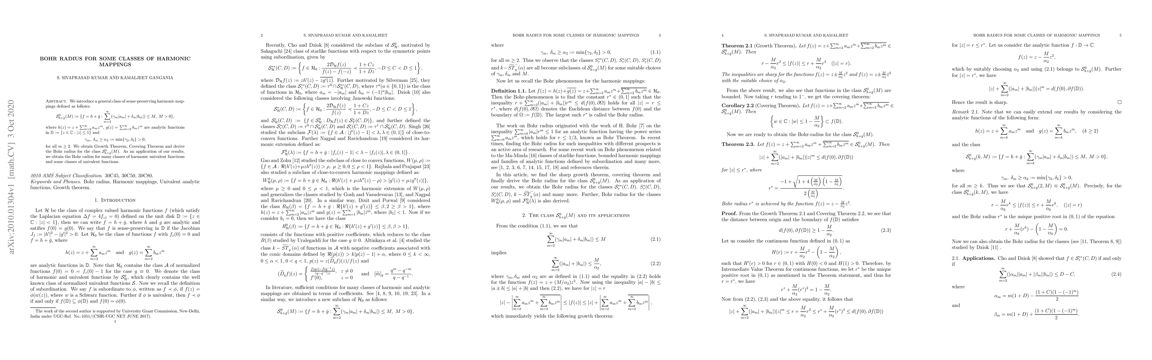 We introduce a general class of sense-preserving harmonic mappings defined as follows: \begin{equation*} \mathcal{S}^0_{h+\bar{g}}(M):= \{f=h+\bar{g}: \sum_{m=2}^{\infty}(\gamma_m|a_m|+\delta_m|b_m|)\leq M, \; M>0 \}, \end{equation*} where $h(z)=z+\sum_{m=2}^{\infty}a_mz^m$, $g(z)=\sum_{m=2}^{\infty}b_m z^m$ are analytic functions in $\mathbb{D}:=\{z\in\mathbb{C}: |z|\leq1 \}$ and \begin{equation*} \gamma_m,\; \delta_m \geq \alpha_2:=\min \{\gamma_2, \delta_2\}>0, \end{equation*} for all $m\geq2$. We obtain Growth Theorem, Covering Theorem and derive the Bohr radius for the class $\mathcal{S}^0_{h+\bar{g}}(M)$. As an application of our results, we obtain the Bohr radius for many classes of harmonic univalent functions and some classes of univalent functions.