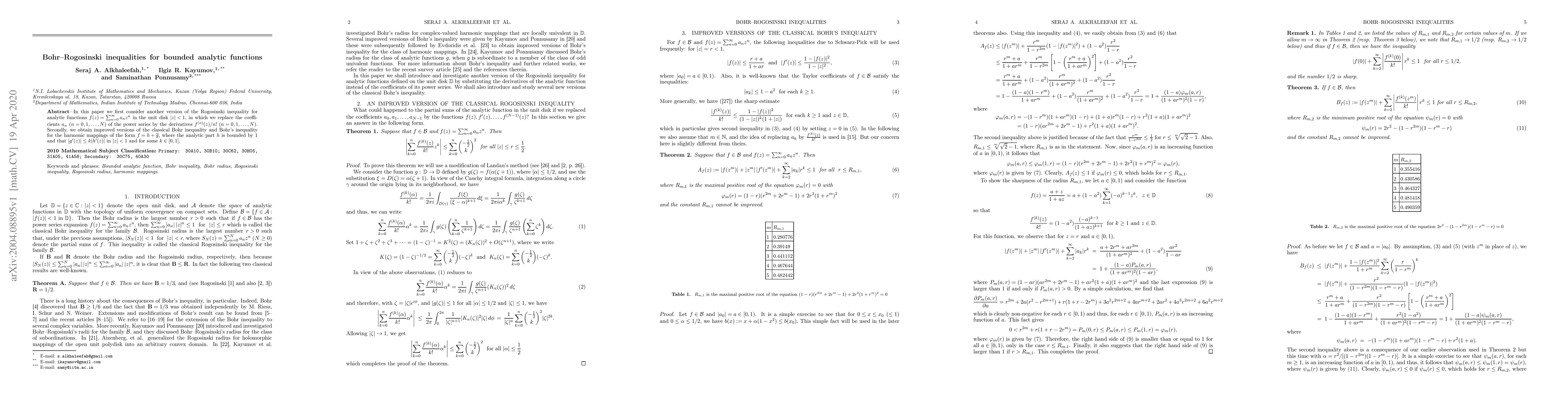 In this paper we first consider another version of the Rogosinski inequality for analytic functions $f(z)=\sum_{n=0}^\infty a_nz^n$ in the unit disk $|z| < 1$, in which we replace the coefficients $a_n$ $(n= 0,1,\ldots ,N)$ of the power series by the derivatives $f^{(n)}(z)/n!$ $(n= 0,1,\ldots ,N)$. Secondly, we obtain improved versions of the classical Bohr inequality and Bohr's inequality for the harmonic mappings of the form $f = h + \overline{g}$, where the analytic part $h$ is bounded by $1$ and that $|g'(z)| \le k|h'(z)|$ in $|z| < 1$ and for some $k \in [0,1]$.