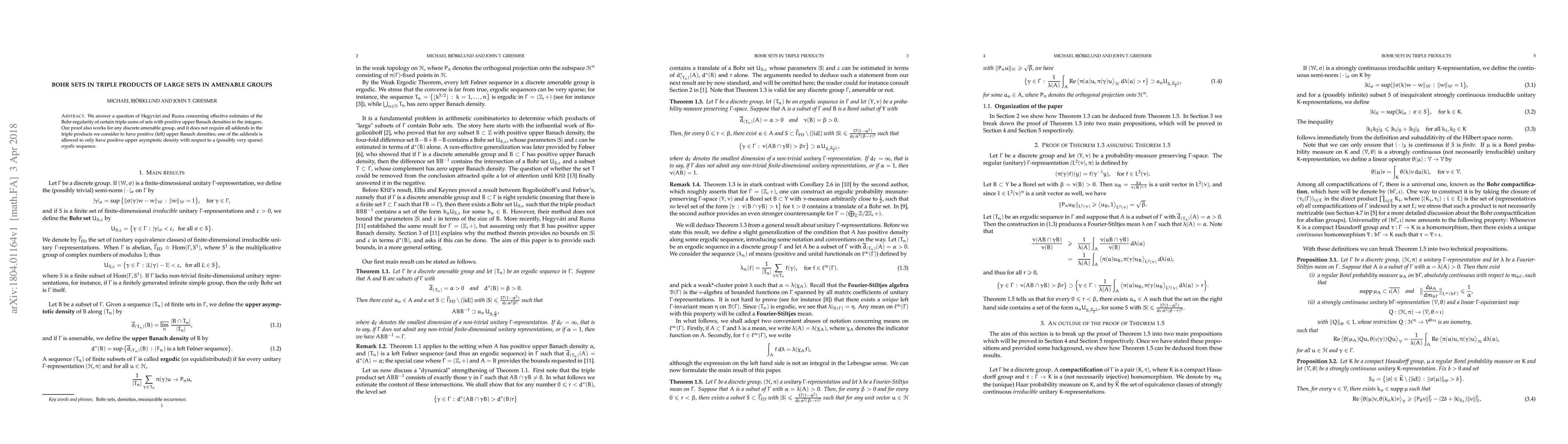 We answer a question of Hegyv\'ari and Ruzsa concerning effective estimates of the Bohr-regularity of certain triple sums of sets with positive upper Banach densities in the integers. Our proof also works for any discrete amenable group, and it does not require all addends in the triple products we consider to have positive (left) upper Banach densities; one of the addends is allowed to only have positive upper asymptotic density with respect to a (possibly very sparse) ergodic sequence.