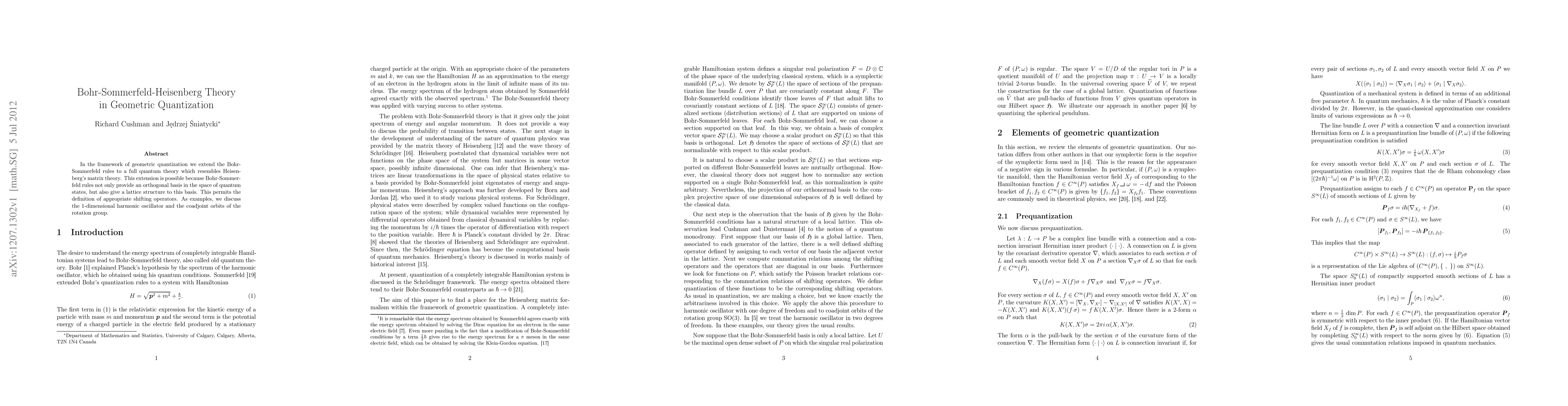 This paper develops a geometric quantization theory that extends Bohr-Sommerfeld rules to a complete quantization resembling Heisenberg's matrix mechanics, utilizing the lattice structure provided by these rules to define shifting operators. Examples include the 1-dimensional harmonic oscillator and rotation group coadjoint orbits.