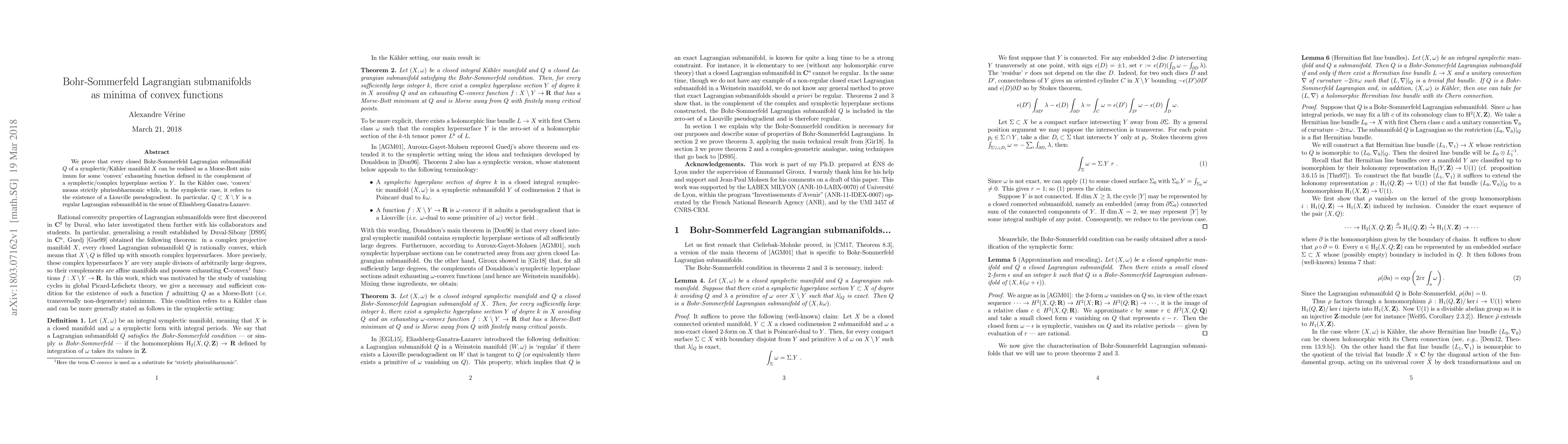 We prove that every closed Bohr-Sommerfeld Lagrangian submanifold $Q$ of a symplectic/K\"ahler manifold $X$ can be realised as a Morse-Bott minimum for some 'convex' exhausting function defined in the complement of a symplectic/complex hyperplane section $Y$. In the K\"ahler case, 'convex' means strictly plurisubharmonic while, in the symplectic case, it refers to the existence of a Liouville pseudogradient. In particular, $Q\subset X\setminus Y$ is a regular Lagrangian submanifold in the sense of Eliashberg-Ganatra-Lazarev.