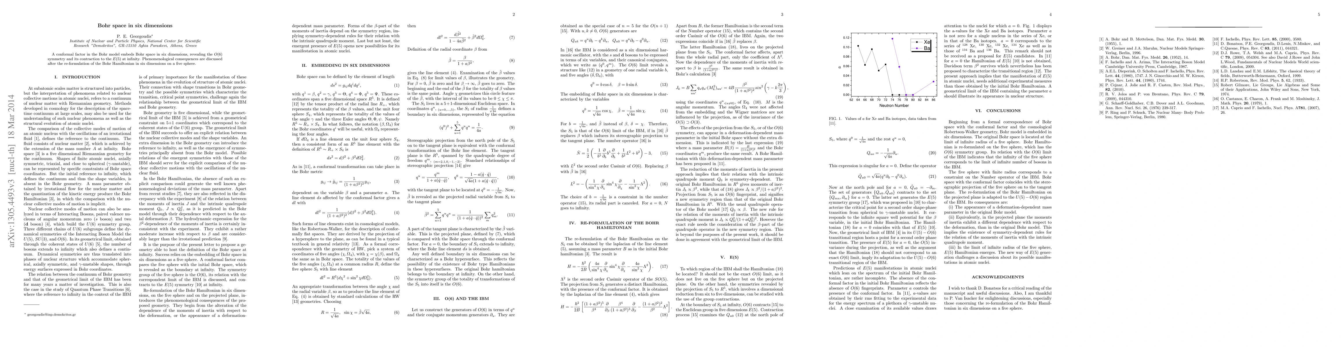This paper explores the embedding of Bohr space in six dimensions using a conformal factor, revealing $O(6)$ symmetry and its contraction to $E(5)$ at infinity. The study reformulates the Bohr Hamiltonian in this new dimension and discusses its phenomenological implications.