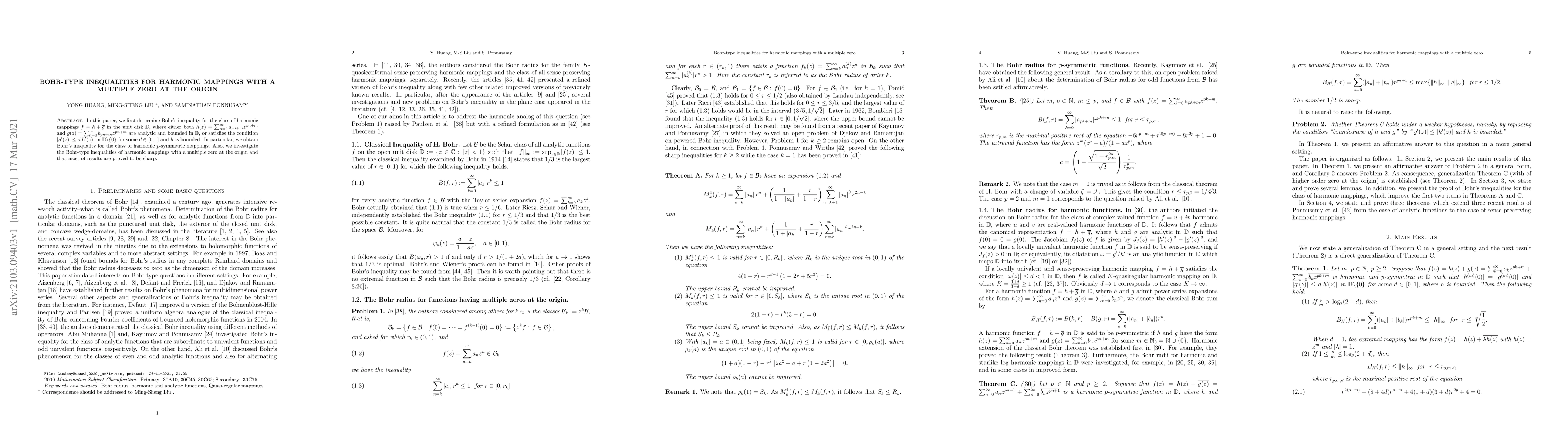 This paper establishes Bohr's inequality for harmonic mappings in the unit disk, particularly focusing on $p$-symmetric mappings and those with a multiple zero at the origin. It also investigates and proves the sharpness of Bohr-type inequalities for these mappings.