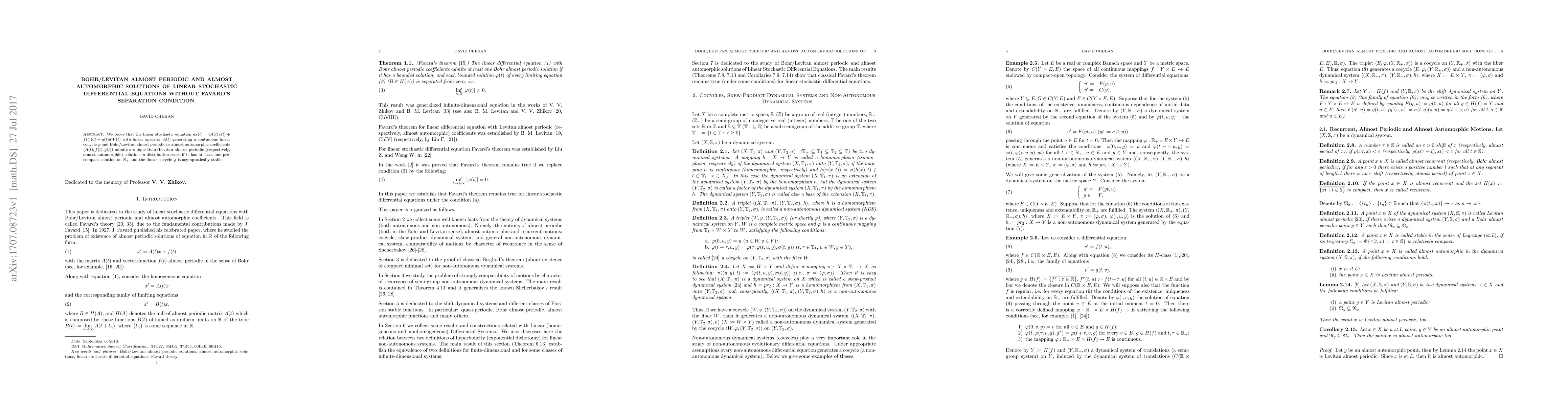 This paper proves the existence of unique Bohr/Levitan almost periodic or almost automorphic solutions in the distribution sense for linear stochastic differential equations without the Favard separation condition, provided that the linear cocycle is asymptotically stable and there is at least one precompact solution.