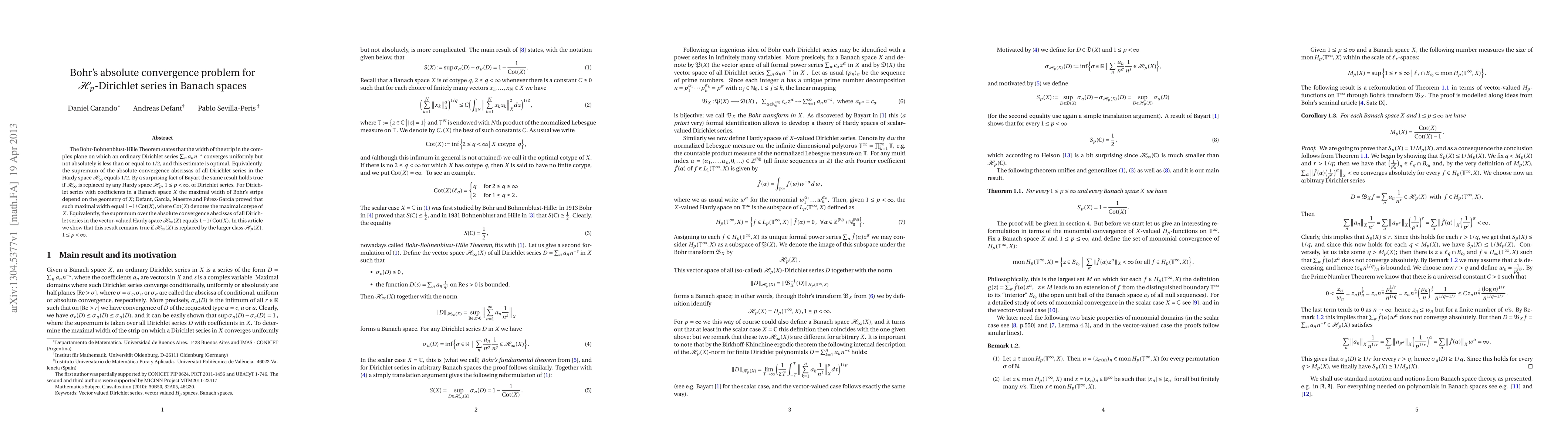 The Bohr-Bohnenblust-Hille Theorem states that the width of the strip in the complex plane on which an ordinary Dirichlet series $\sum_n a_n n^{-s}$ converges uniformly but not absolutely is less than or equal to 1/2, and this estimate is optimal. Equivalently, the supremum of the absolute convergence abscissas of all Dirichlet series in the Hardy space $\mathcal{H}_\infty$ equals 1/2. By a surprising fact of Bayart the same result holds true if $\mathcal{H}_\infty$ is replaced by any Hardy space $\mathcal{H}_p$, $1 \le p < \infty$, of Dirichlet series. For Dirichlet series with coefficients in a Banach space $X$ the maximal width of Bohr's strips depend on the geometry of $X$; Defant, Garc\'ia, Maestre and P\'erez-Garc\'ia proved that such maximal width equal $1- 1/\ct(X)$, where $\ct(X)$ denotes the maximal cotype of $X$. Equivalently, the supremum over the absolute convergence abscissas of all Dirichlet series in the vector-valued Hardy space $\mathcal{H}_\infty(X)$ equals $1- 1/\ct(X)$. In this article we show that this result remains true if $\mathcal{H}_\infty(X)$ is replaced by the larger class $\mathcal{H}_p(X)$, $1 \le p < \infty$.