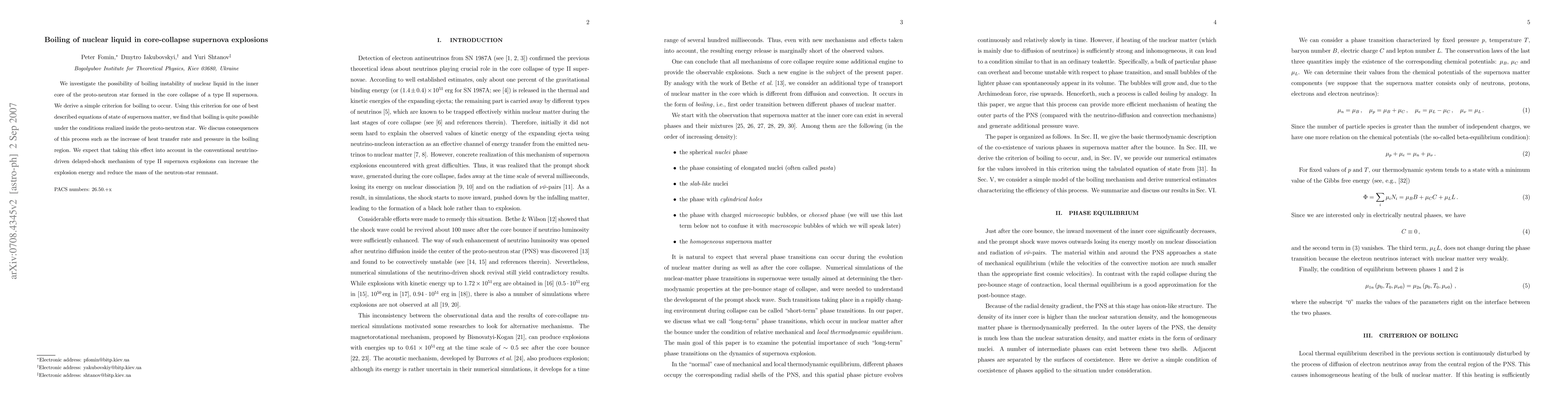 The research investigates the possibility of boiling instability of nuclear liquid in the inner core of a proto-neutron star formed in a core-collapse supernova. A criterion for boiling is derived and applied to a specific equation of state for supernova matter.