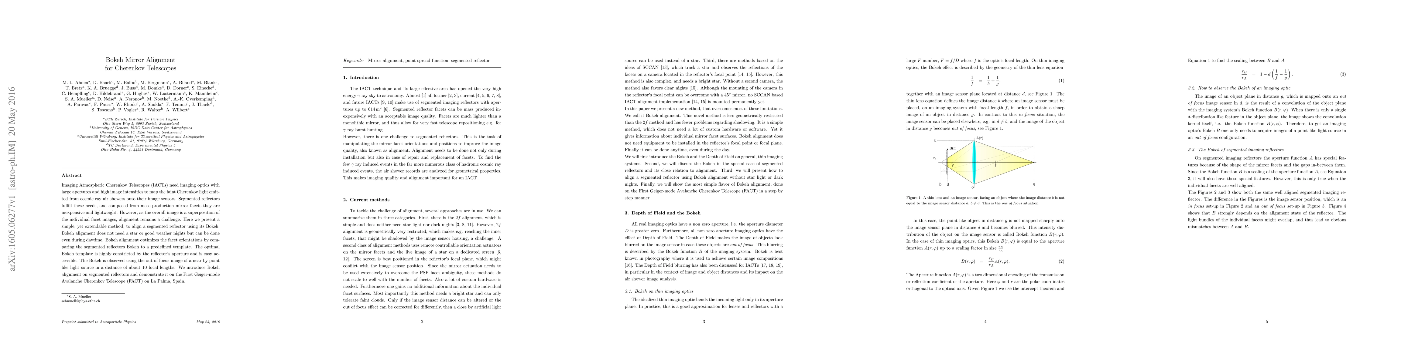 Imaging Atmospheric Cherenkov Telescopes (IACTs) need imaging optics with large apertures and high image intensities to map the faint Cherenkov light emitted from cosmic ray air showers onto their image sensors. Segmented reflectors fulfill these needs, and composed from mass production mirror facets they are inexpensive and lightweight. However, as the overall image is a superposition of the individual facet images, alignment remains a challenge. Here we present a simple, yet extendable method, to align a segmented reflector using its Bokeh. Bokeh alignment does not need a star or good weather nights but can be done even during daytime. Bokeh alignment optimizes the facet orientations by comparing the segmented reflectors Bokeh to a predefined template. The optimal Bokeh template is highly constricted by the reflector's aperture and is easy accessible. The Bokeh is observed using the out of focus image of a near by point like light source in a distance of about 10 focal lengths. We introduce Bokeh alignment on segmented reflectors and demonstrate it on the First Geiger-mode Avalanche Cherenkov Telescope (FACT) on La Palma, Spain.