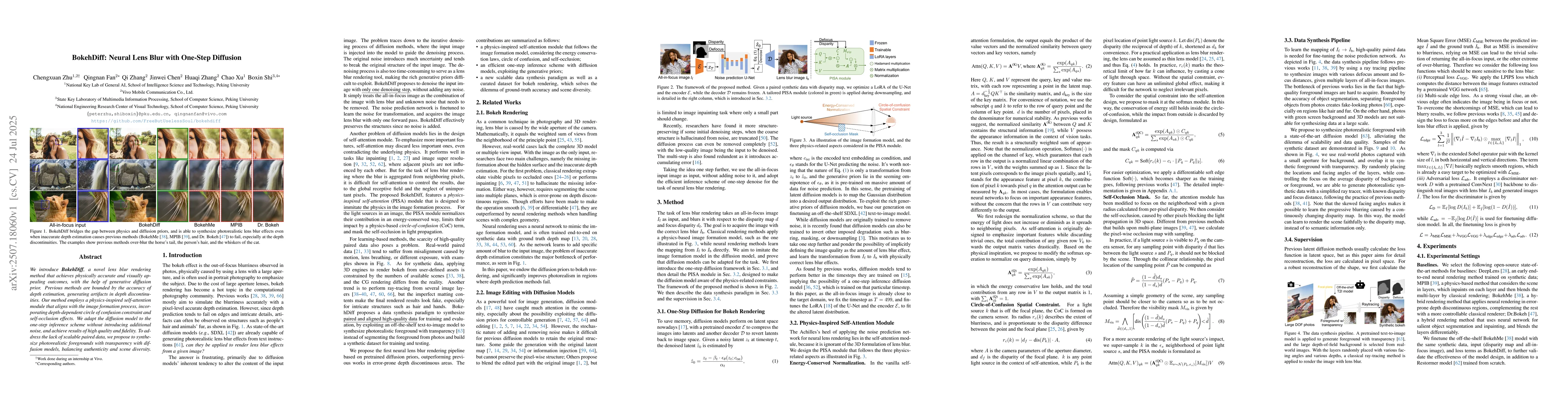 We introduce BokehDiff, a novel lens blur rendering method that achieves physically accurate and visually appealing outcomes, with the help of generative diffusion prior. Previous methods are bounded by the accuracy of depth estimation, generating artifacts in depth discontinuities. Our method employs a physics-inspired self-attention module that aligns with the image formation process, incorporating depth-dependent circle of confusion constraint and self-occlusion effects. We adapt the diffusion model to the one-step inference scheme without introducing additional noise, and achieve results of high quality and fidelity. To address the lack of scalable paired data, we propose to synthesize photorealistic foregrounds with transparency with diffusion models, balancing authenticity and scene diversity.
