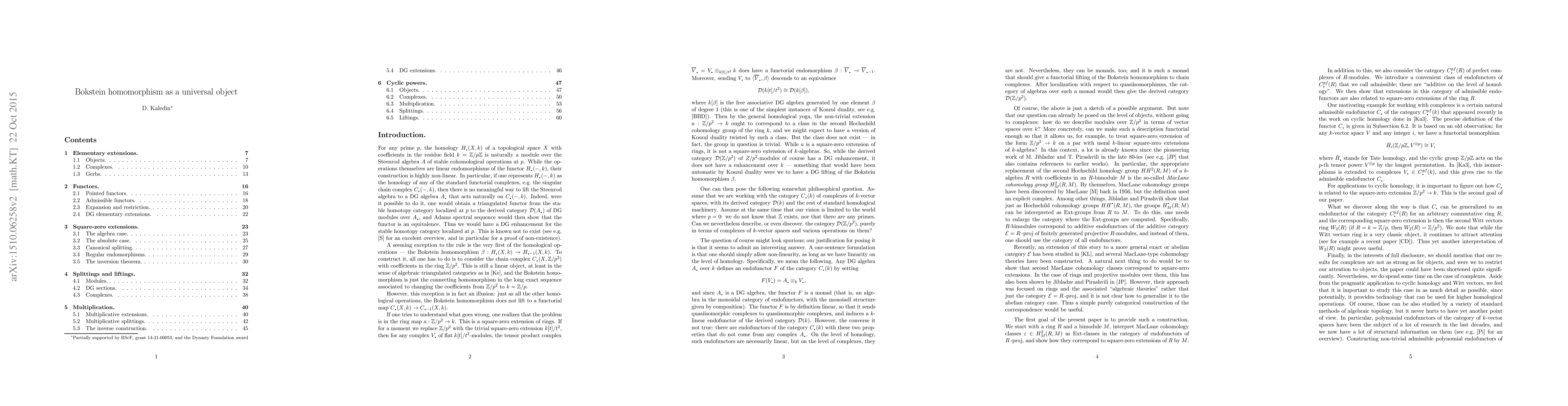 We give a simple construction of the correspondence between square-zero extensions $R'$ of a ring $R$ by an $R$-bimodule $M$ and second MacLane cohomology classes of $R$ with coefficients in $M$ (the simplest non-trivial case of the construction is $R=M=Z/p$, $R'=Z/p^2$, thus the Bokstein homomorphism of the title). Following Jibladze and Pirashvili, we treat MacLane cohomology as cohomology of non-additive endofunctors of the category of projective $R$-modules. We explain how to describe liftings of $R$-modules and complexes of $R$-modules to $R'$ in terms of data purely over $R$. We show that if $R$ is commutative, then commutative square-zero extensions $R'$ correspond to multiplicative extensions of endofunctors. We then explore in detail one particular multiplicative non-additive endofunctor constructed from cyclic powers of a module $V$ over a commutative ring $R$ annihilated by a prime $p$. In this case, $R'$ is the second Witt vectors ring $W_2(R)$ considered as a square-zero extension of $R$ by the Frobenius twist $R^{(1)}$.