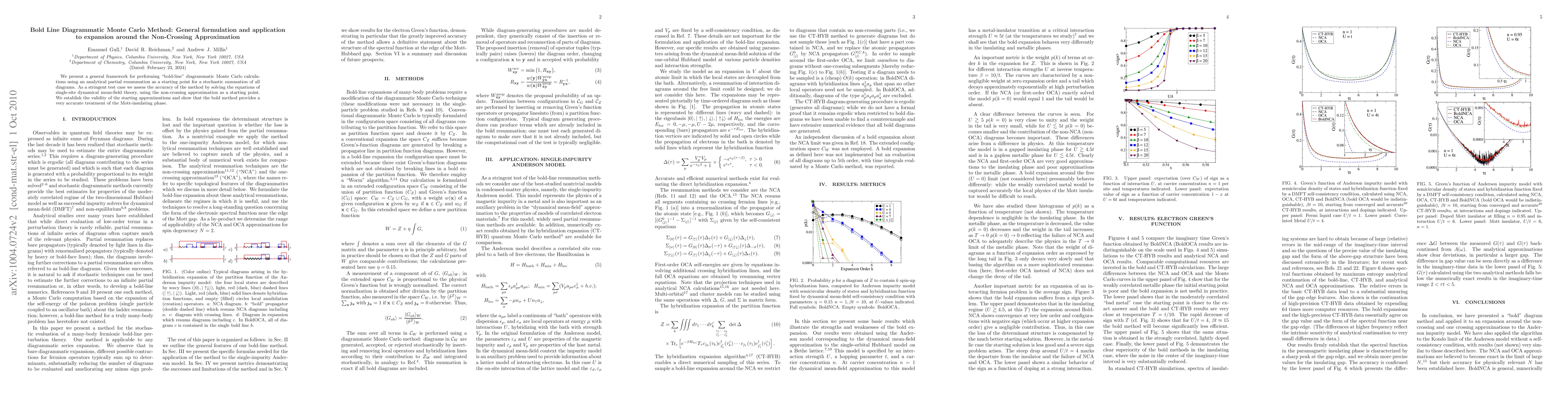 The paper introduces a "bold-line" diagrammatic Monte Carlo method based on analytical partial resummation for stochastically summing all diagrams, and applies it to the one-orbital Anderson model using the non-crossing approximation, demonstrating high accuracy in describing the Mott-insulating phase.